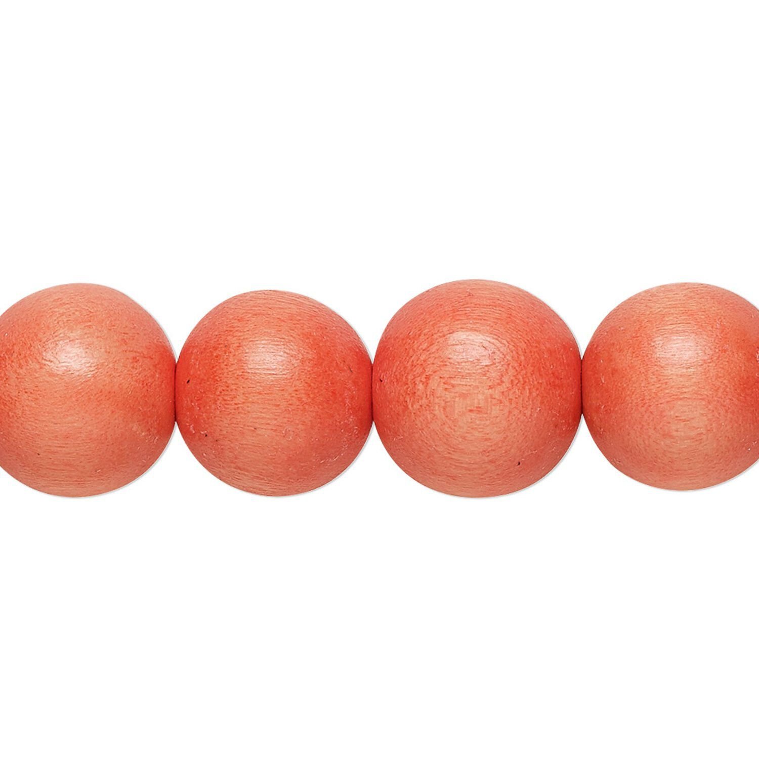Bead 1pkg1, Taiwanese cheesewood (dyed / waxed), orange, 11-12 round, 15-1/2 to 16 inches.