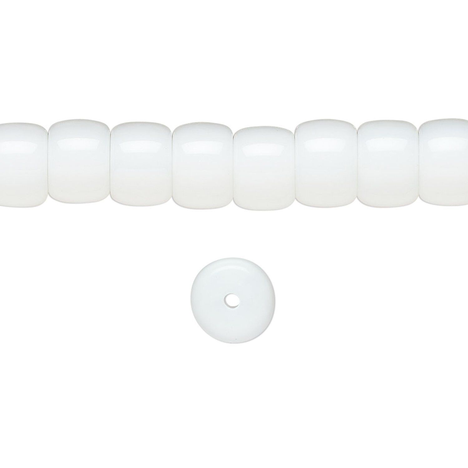 Bead, glass, opaque white, 8x6mm barrel. Sold per 15-1/2 to 16-inch strand.