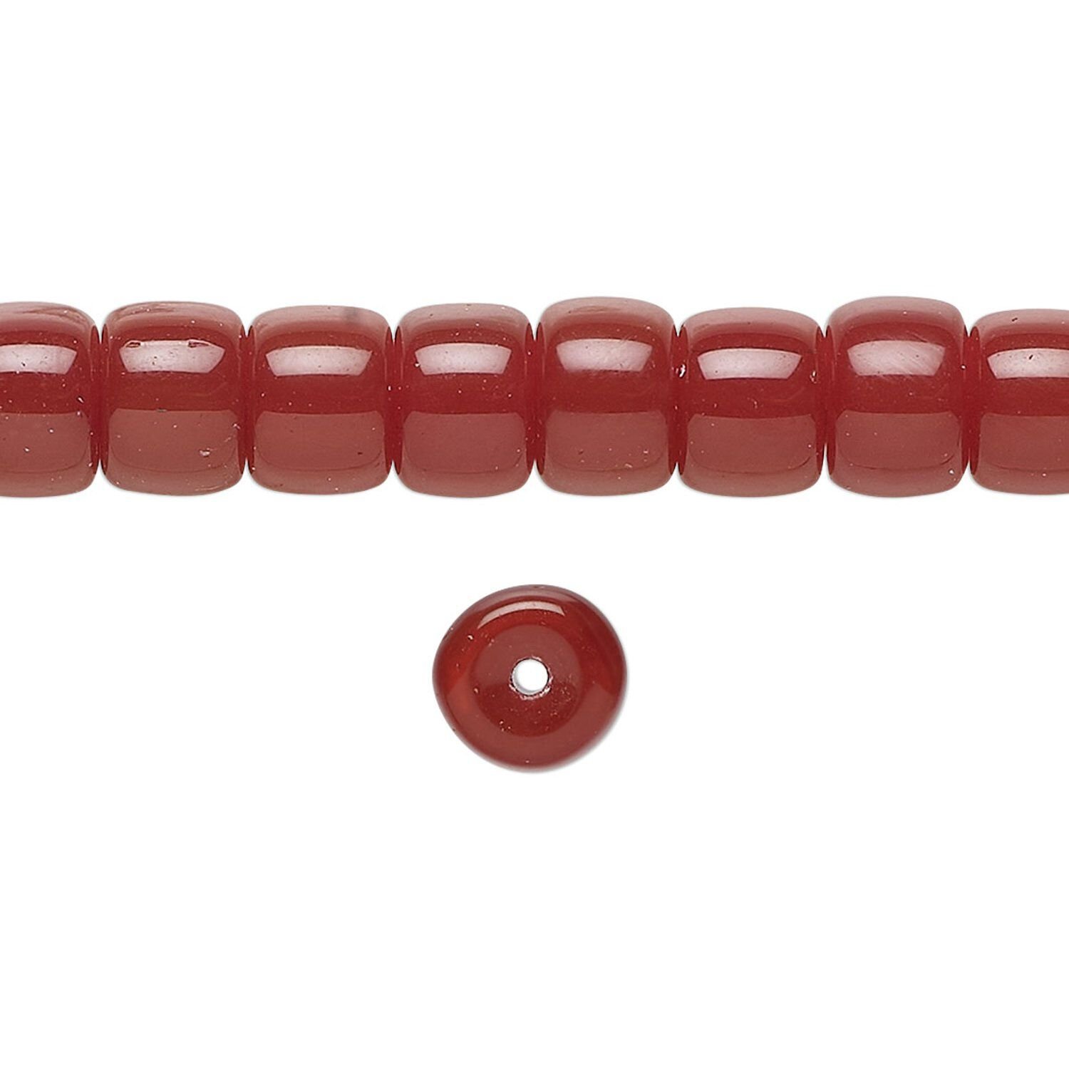Get the look of traditional crow beads with a smaller drill hole for standard-size stringing materials. These pressed glass beads in the popular barrel shape are consistent in size and color.