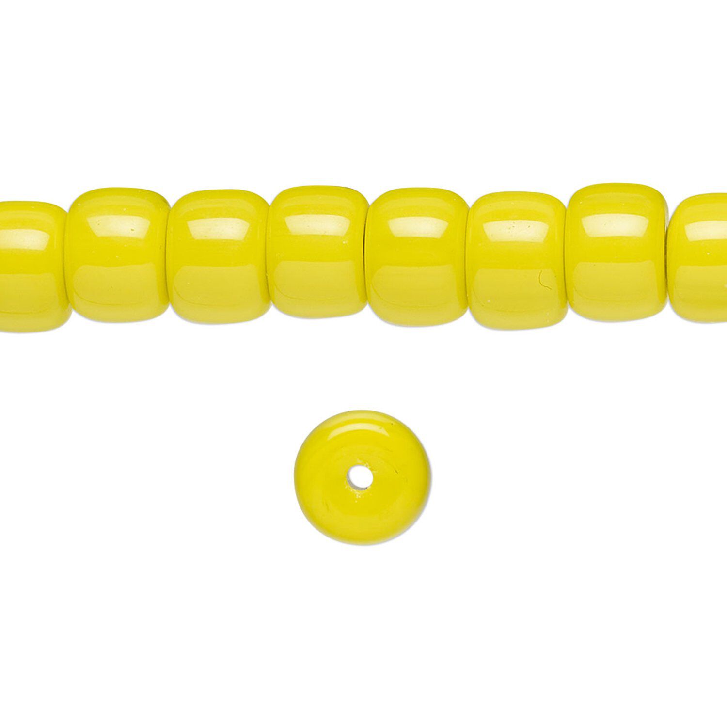 Bead, glass, opaque yellow, 8x6mm barrel. Sold per 15-1/2 to 16-inch strand.