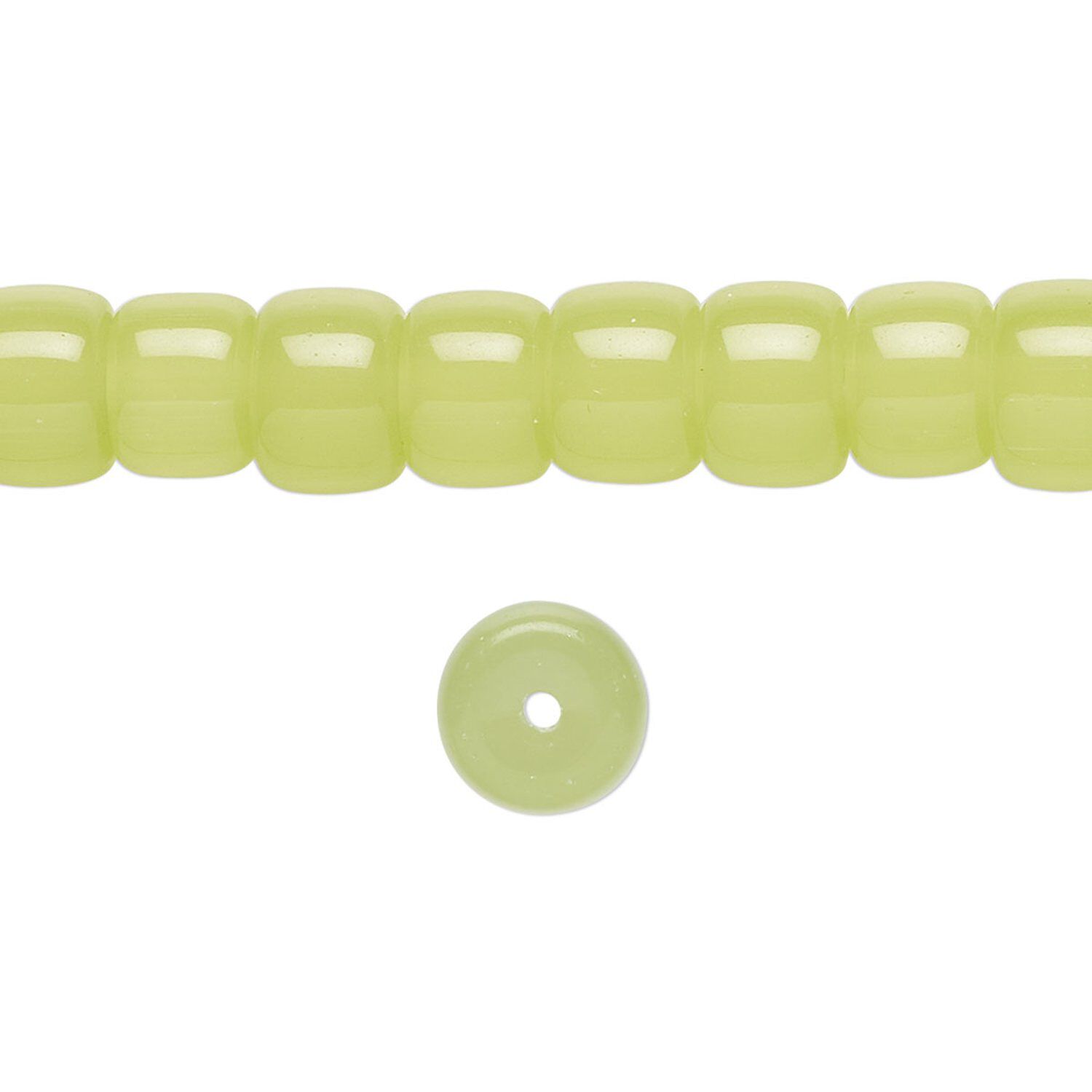 Bead, glass, translucent peridot, 8x6mm barrel. Sold per 15-1/2 to 16-inch strand.