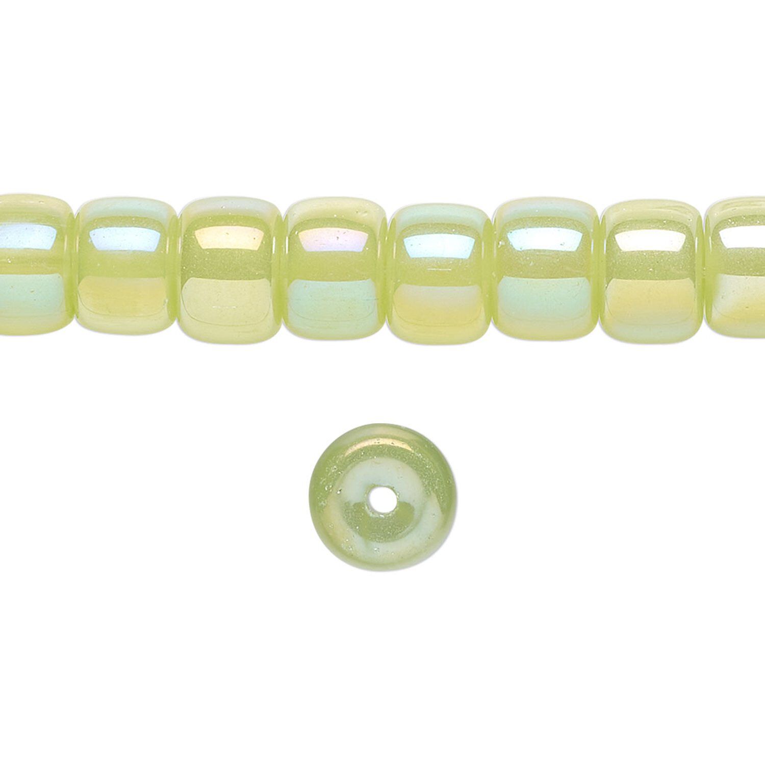 Bead, glass, translucent peridot rainbow, 8x6mm barrel. Sold per 15-1/2 to 16-inch strand.