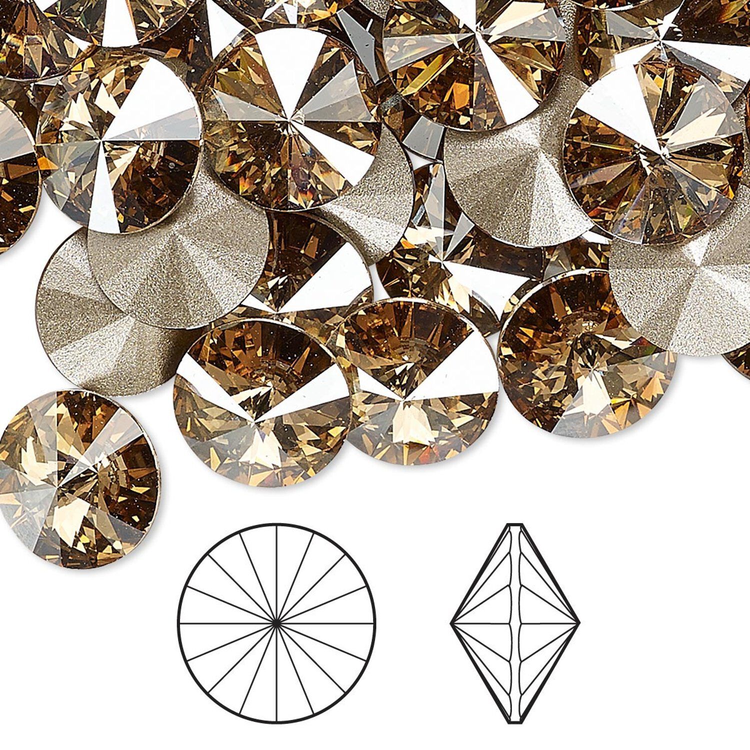 Crystal rivoli chatons are faceted to a point on both the top and bottom for a captivating sparkle. Crystal rhinestones can be incorporated into an array of designs including wirework, glued into specifically calibrated settings or set in polymer clay, metal clay, Apoxie® Sculpt, Vitrium® Clay or pourable jewelry resin.