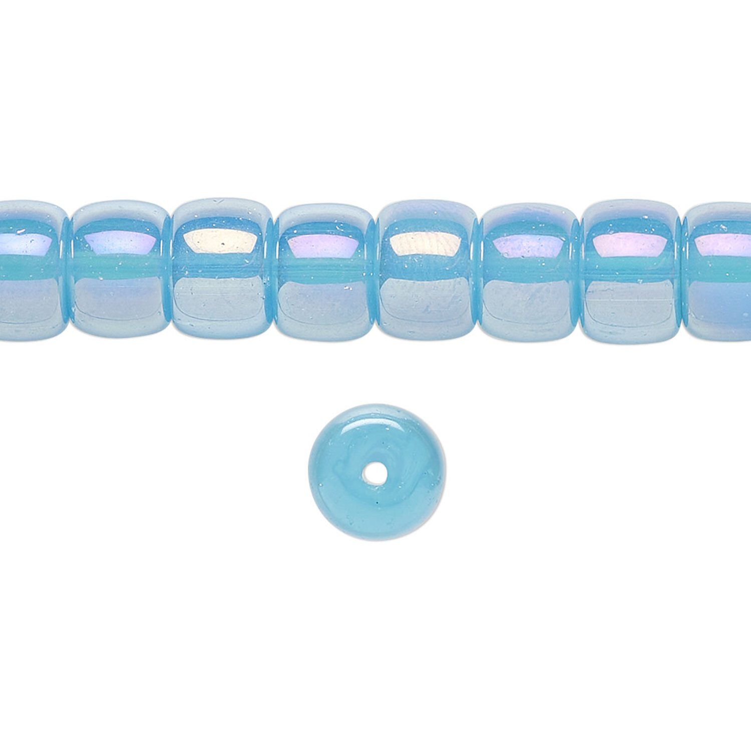 Get the look of traditional crow beads with a smaller drill hole for standard-size stringing materials. These pressed glass beads in the popular barrel shape are consistent in size and color. The rainbow finish gives a lovely iridescent sheen to the smooth bead surface.