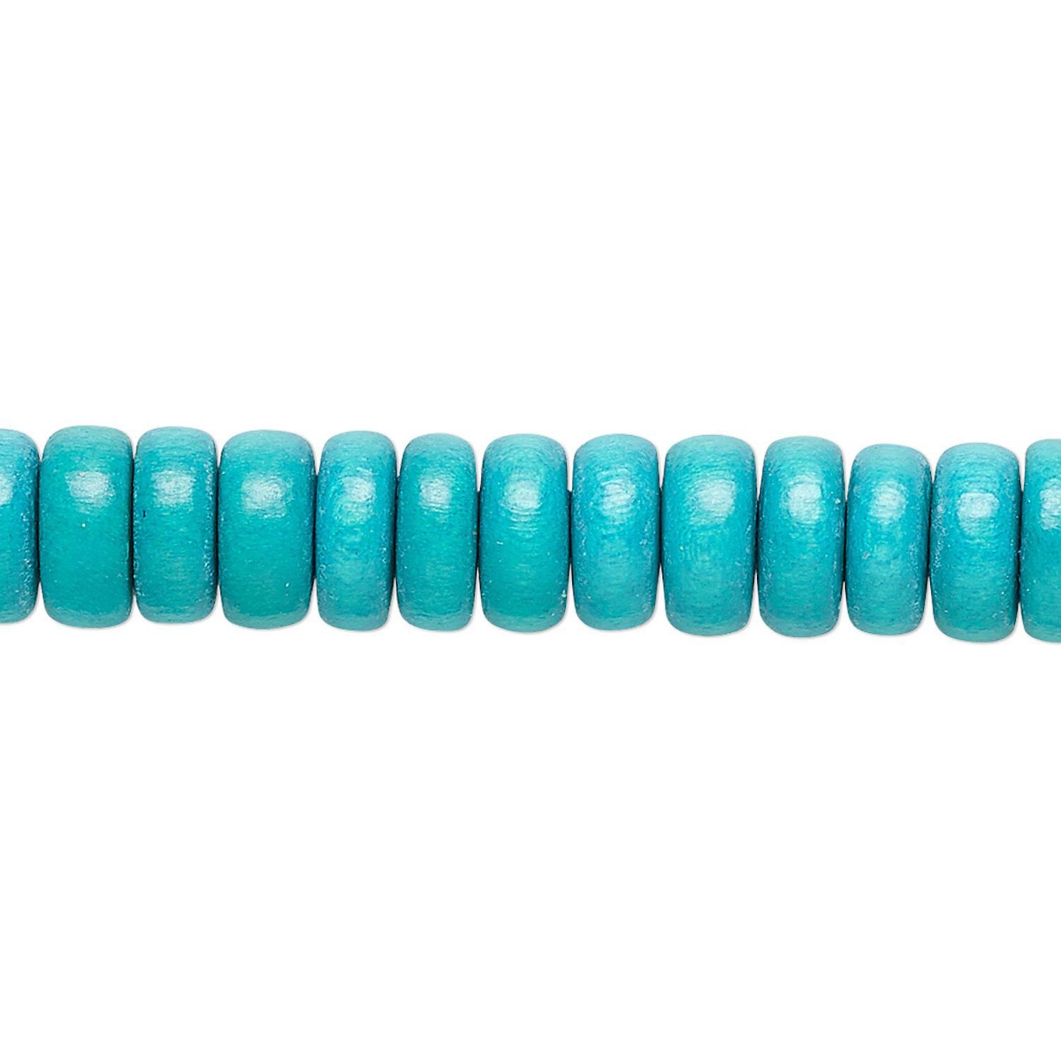 Bead 1pkg1, Taiwanese cheesewood (dyed / waxed), turquoise blue, 8x4mm rondelle, 15-1/2 to 16 inches.