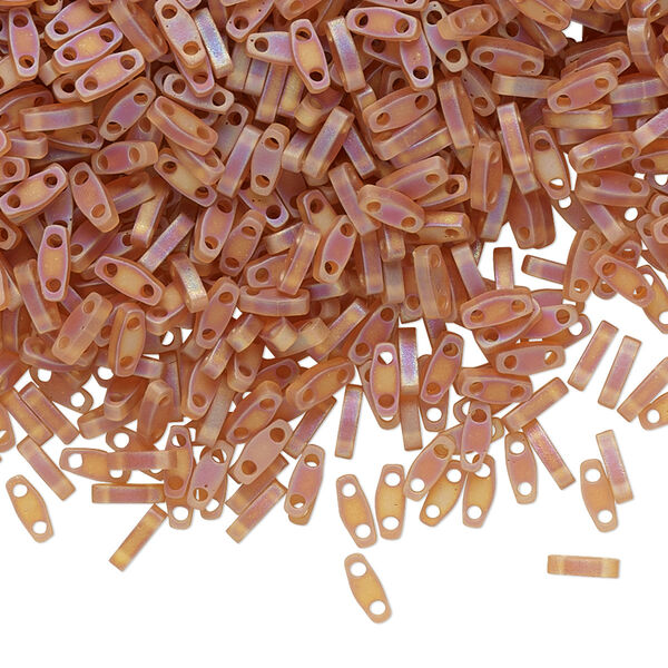 Seed bead, TILA®, glass, pkg/5g, 5x1.2mm quarter tila rectangle, translucent rainbow matte dark topaz, (QTL-134FR).