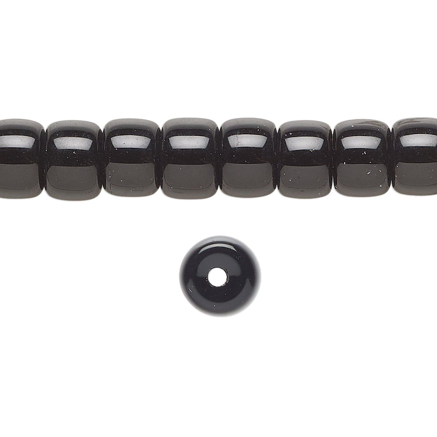 Bead, glass, opaque black, 8x6mm barrel. Sold per 15-1/2 to 16-inch strand.