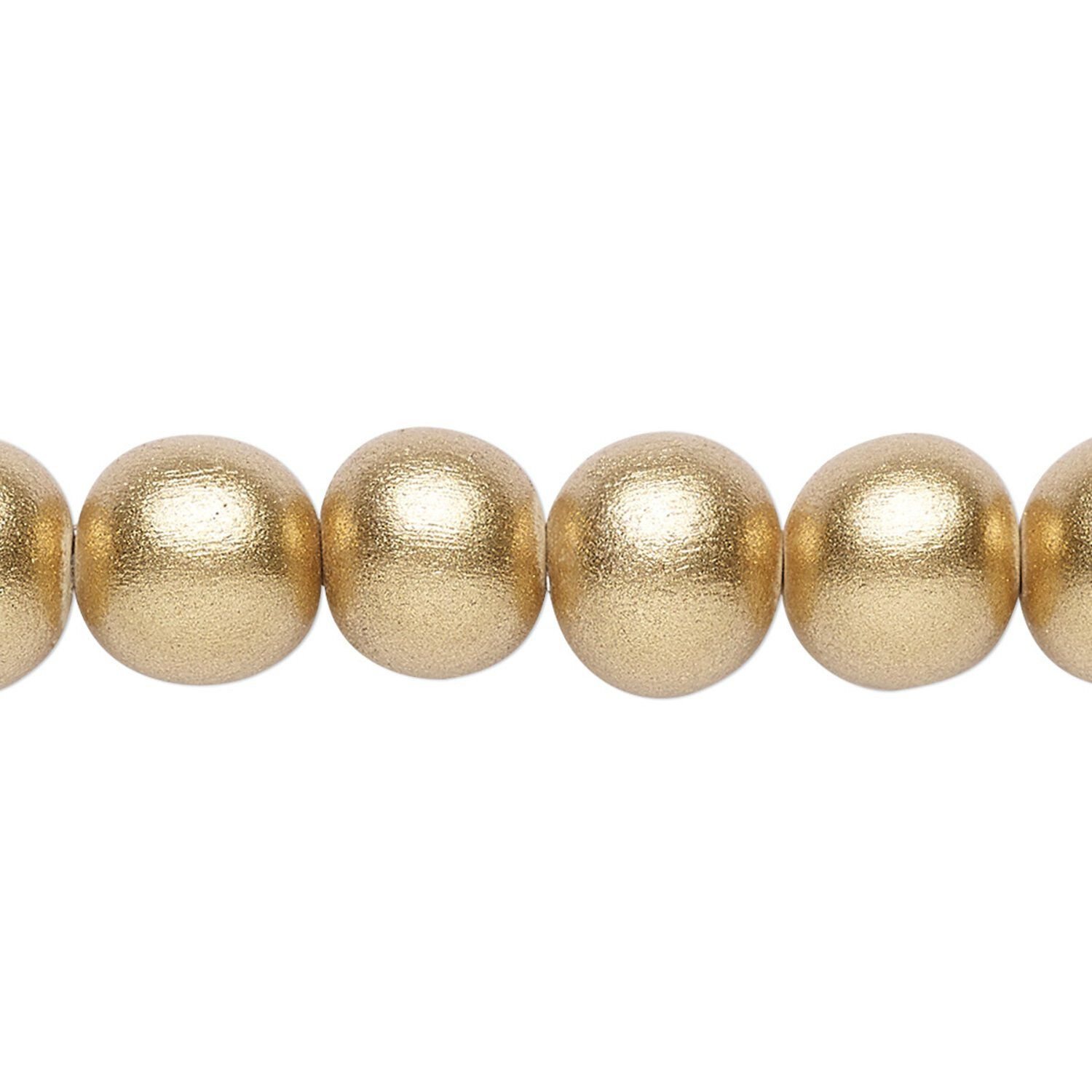 Bead 1pkg1, Taiwanese cheesewood (coated), painted metallic gold, 9-10 round, 15-1/2 to 16 inches.