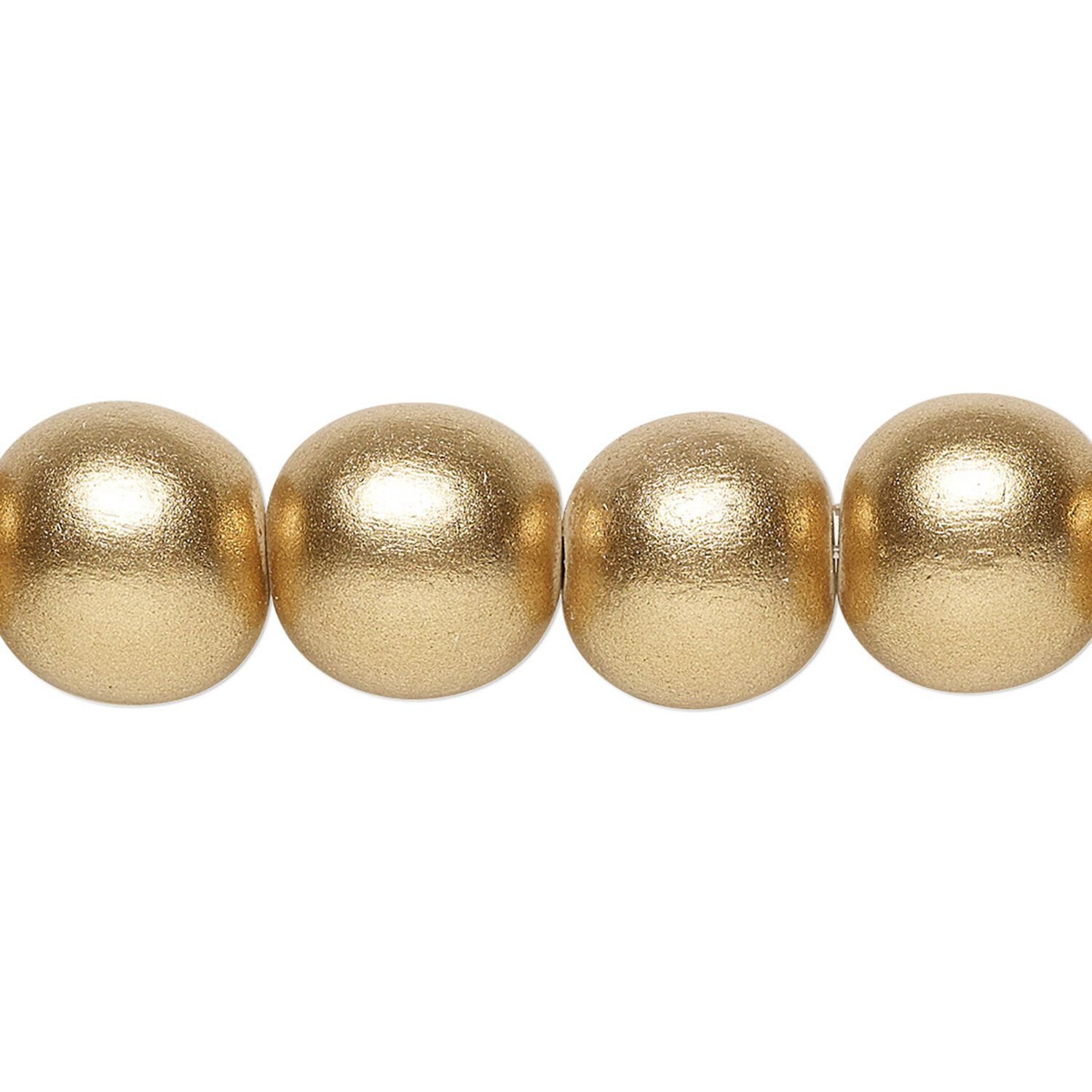 Bead 1pkg1, Taiwanese cheesewood (coated), painted metallic gold, 11-12 round, 15-1/2 to 16 inches.