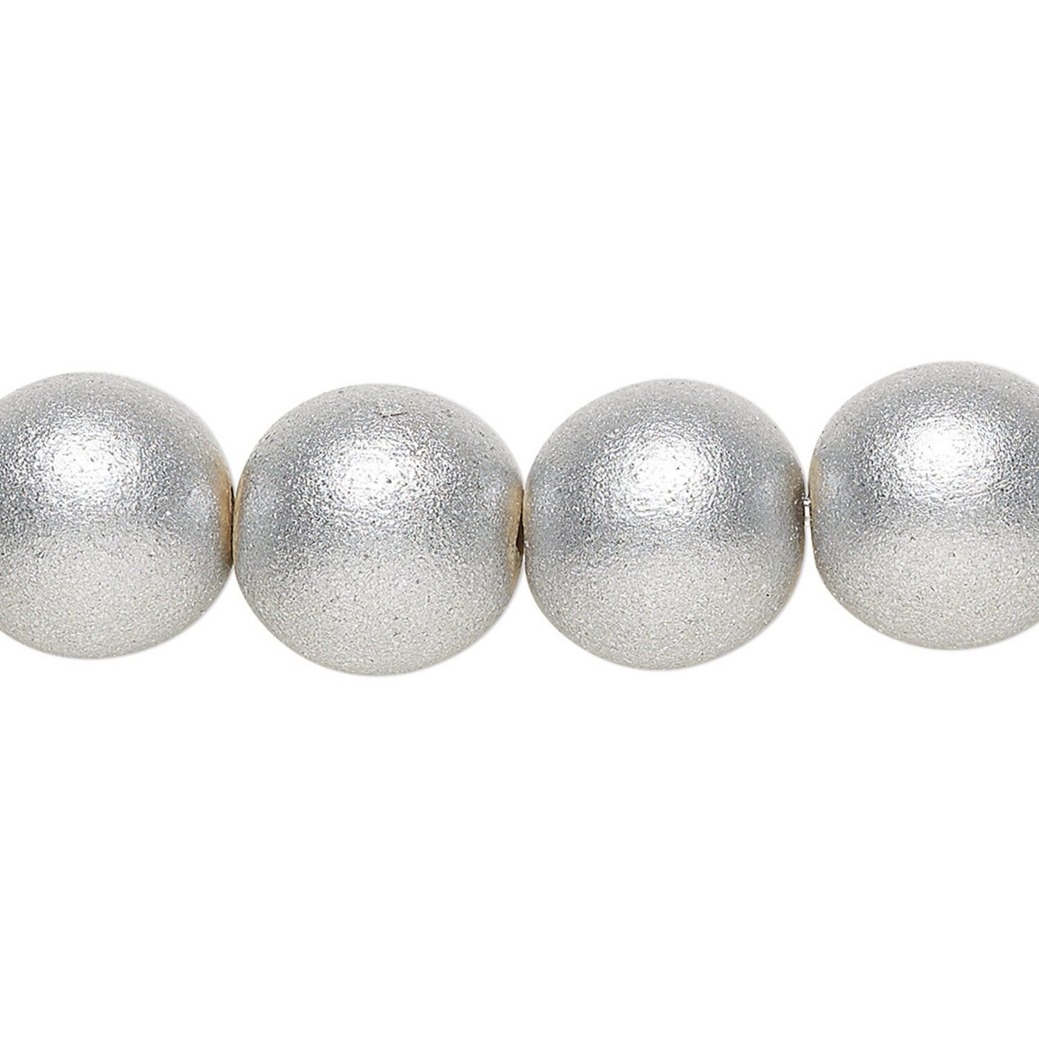 Bead 1pkg1, Taiwanese cheesewood (coated), painted metallic silver, 11-12 round, 15-1/2 to 16 inches.