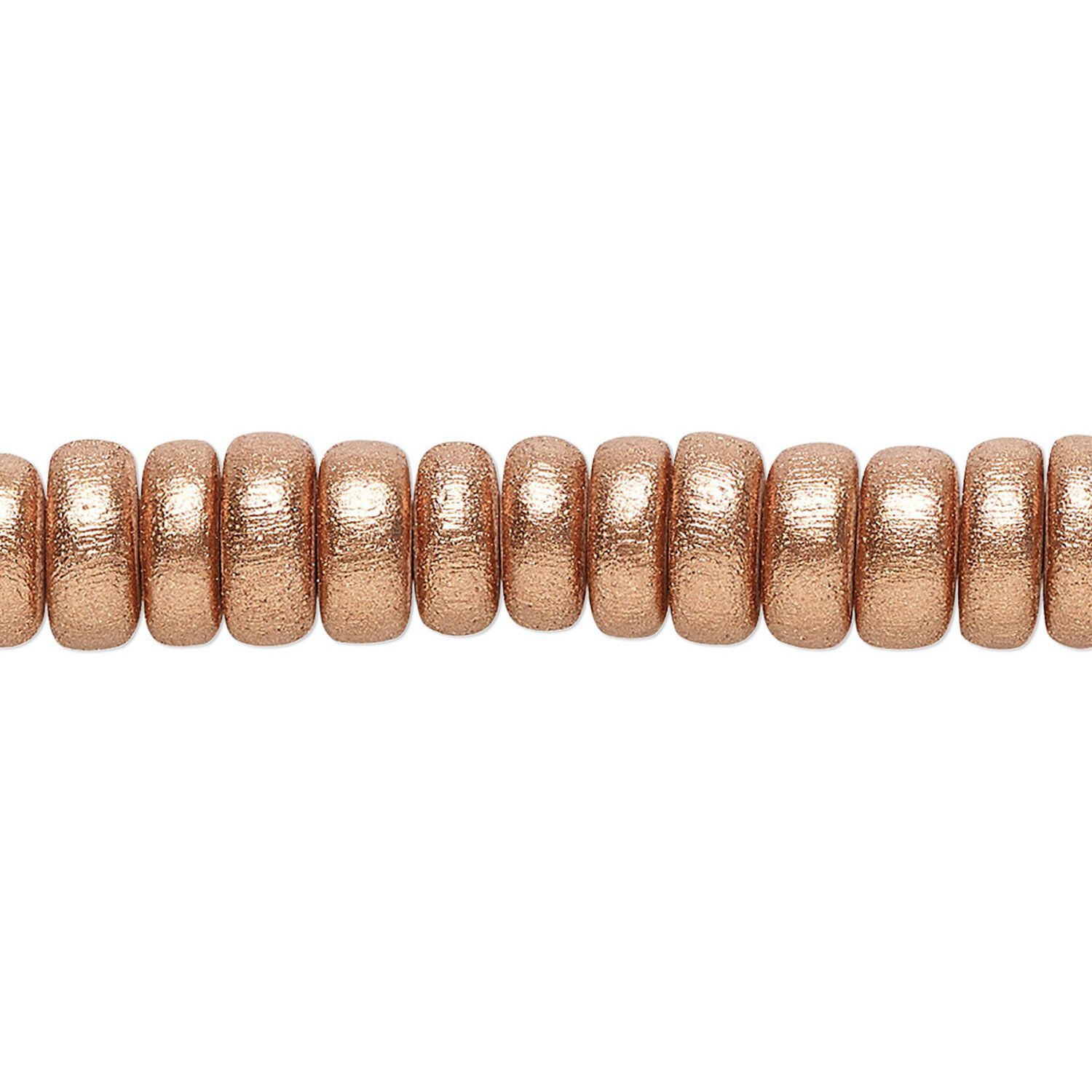 Bead 1pkg1, Taiwanese cheesewood (coated), painted metallic copper, 8x4mm rondelle, 15-1/2 to 16 inches.