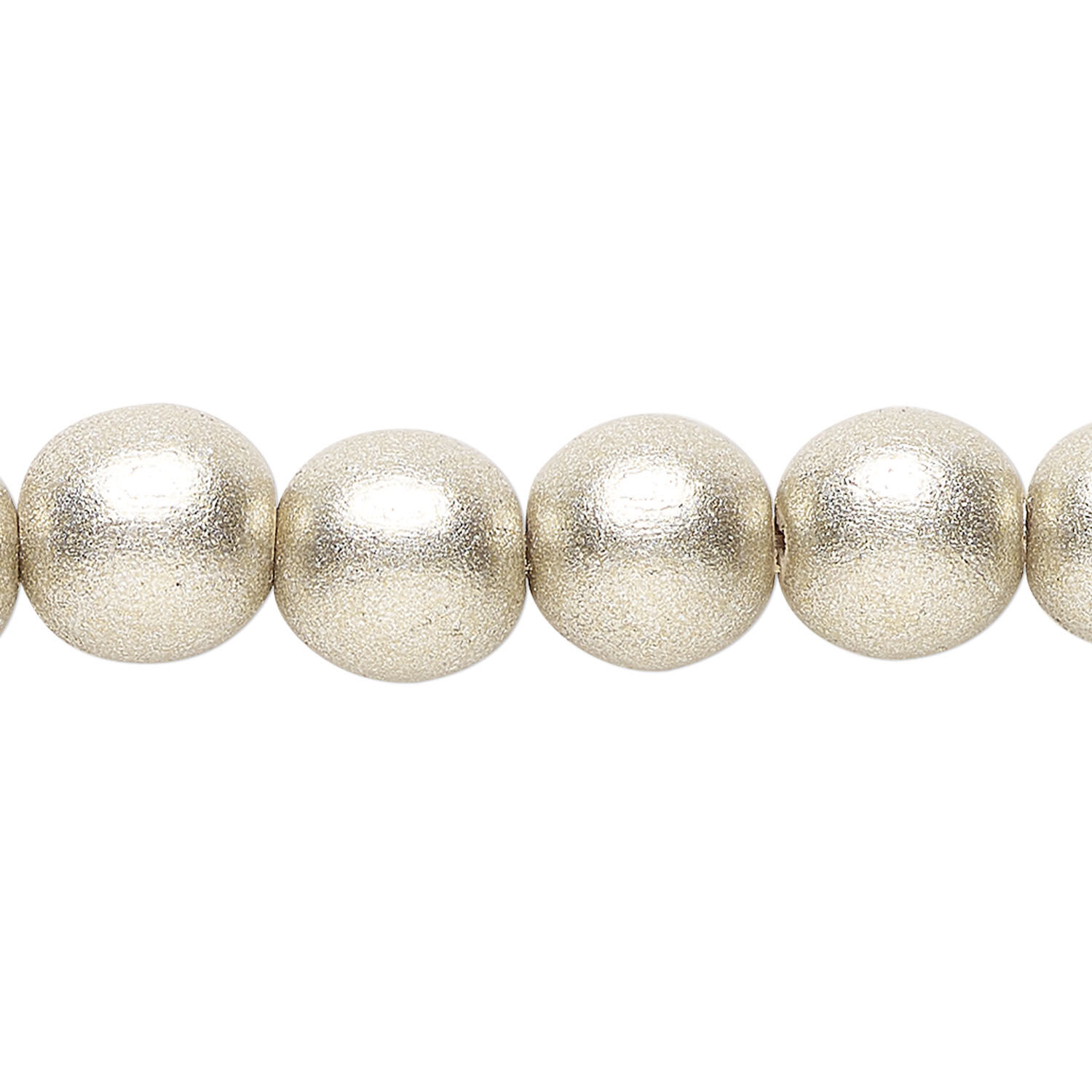 Bead 1pkg1, Taiwanese cheesewood (coated), painted metallic platinum, 9-10 round, 15-1/2 to 16 inches.