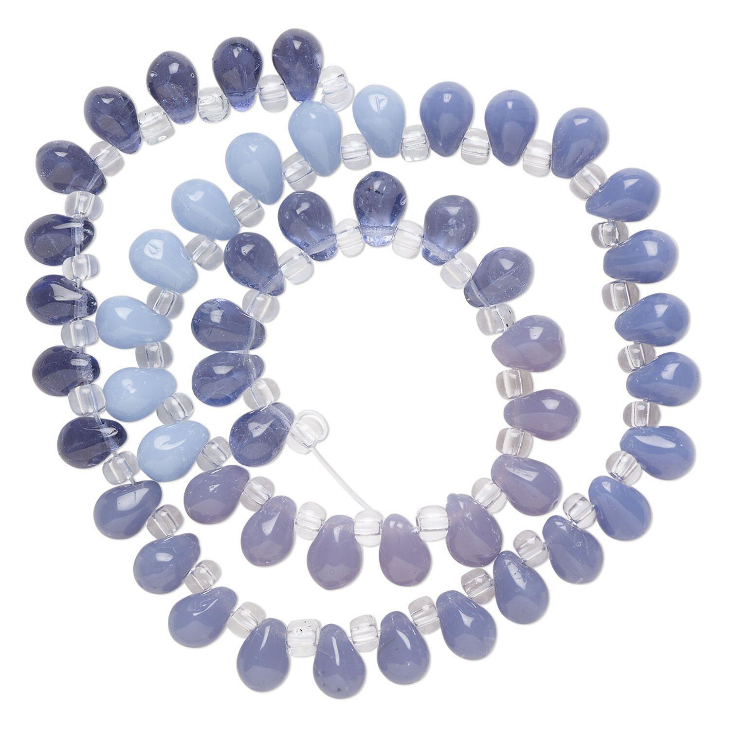 Strung in popular color groupings, these handcrafted glass teardrops save time while shopping for coordinating jewelry supplies. Colors include pale purple opal, light purple opal and purple. Beads are temporarily strung with clear glass spacer beads to protect against chipping. Color, shapes, and sizes may vary. Contains approximately 50 beads.