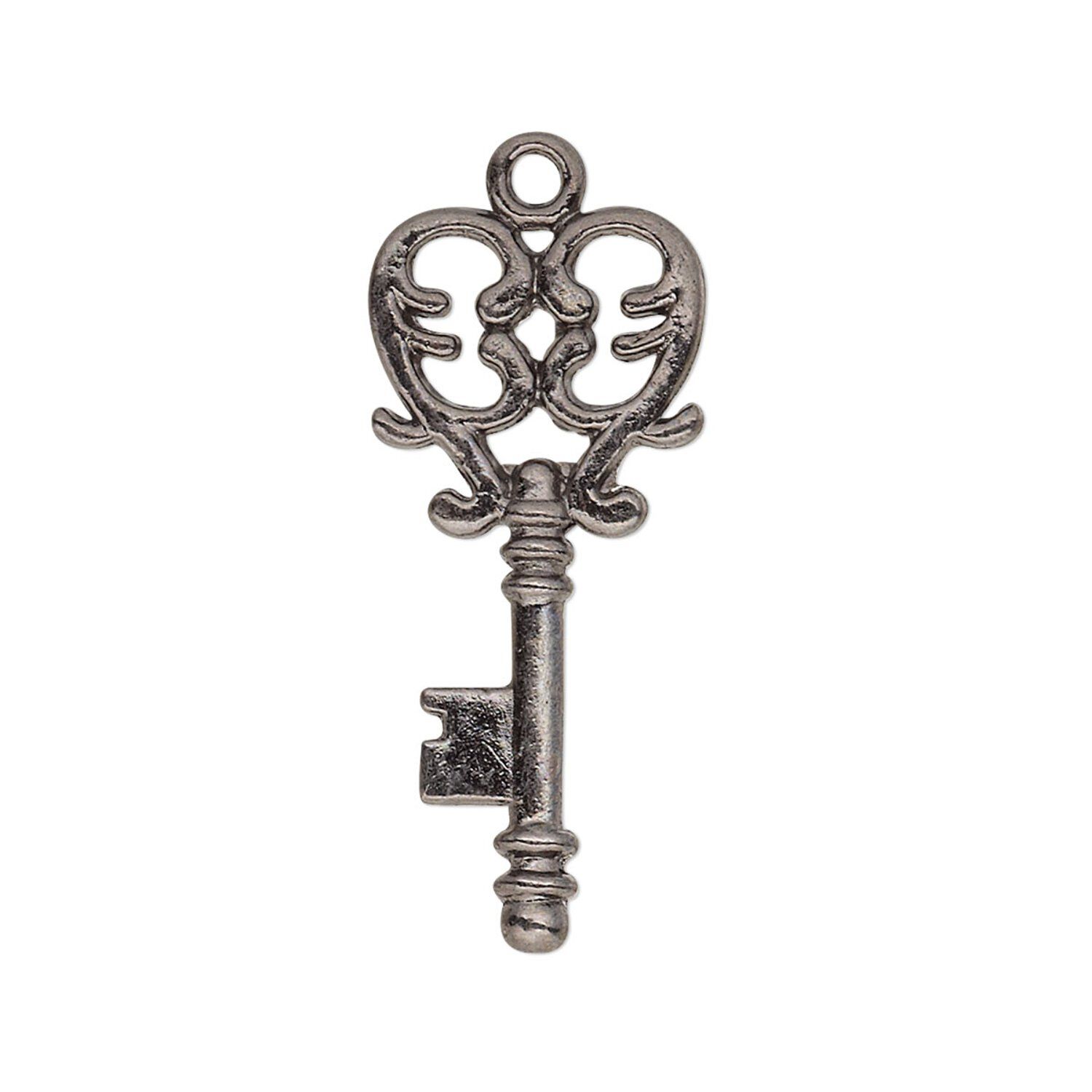 Intricate detail is the "key" to beautiful jewelry design using this fancy key-shaped focal component. Focal components are machine-cast of "pewter" (zinc-based alloy) for complex shapes and details, then polished and given a gunmetal plating.