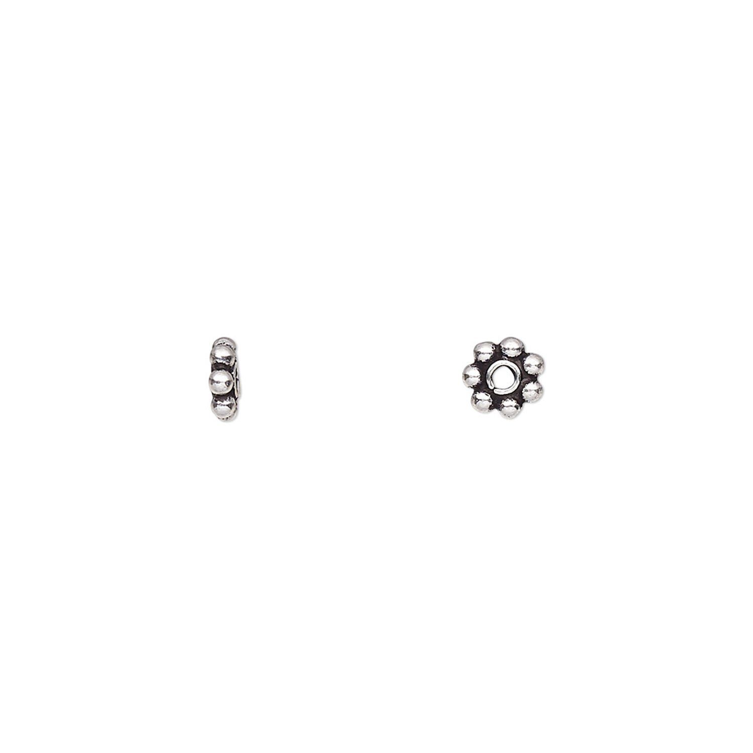 Bead, antiqued sterling silver, 5x1.5mm beaded rondelle. Sold per pkg of 10.