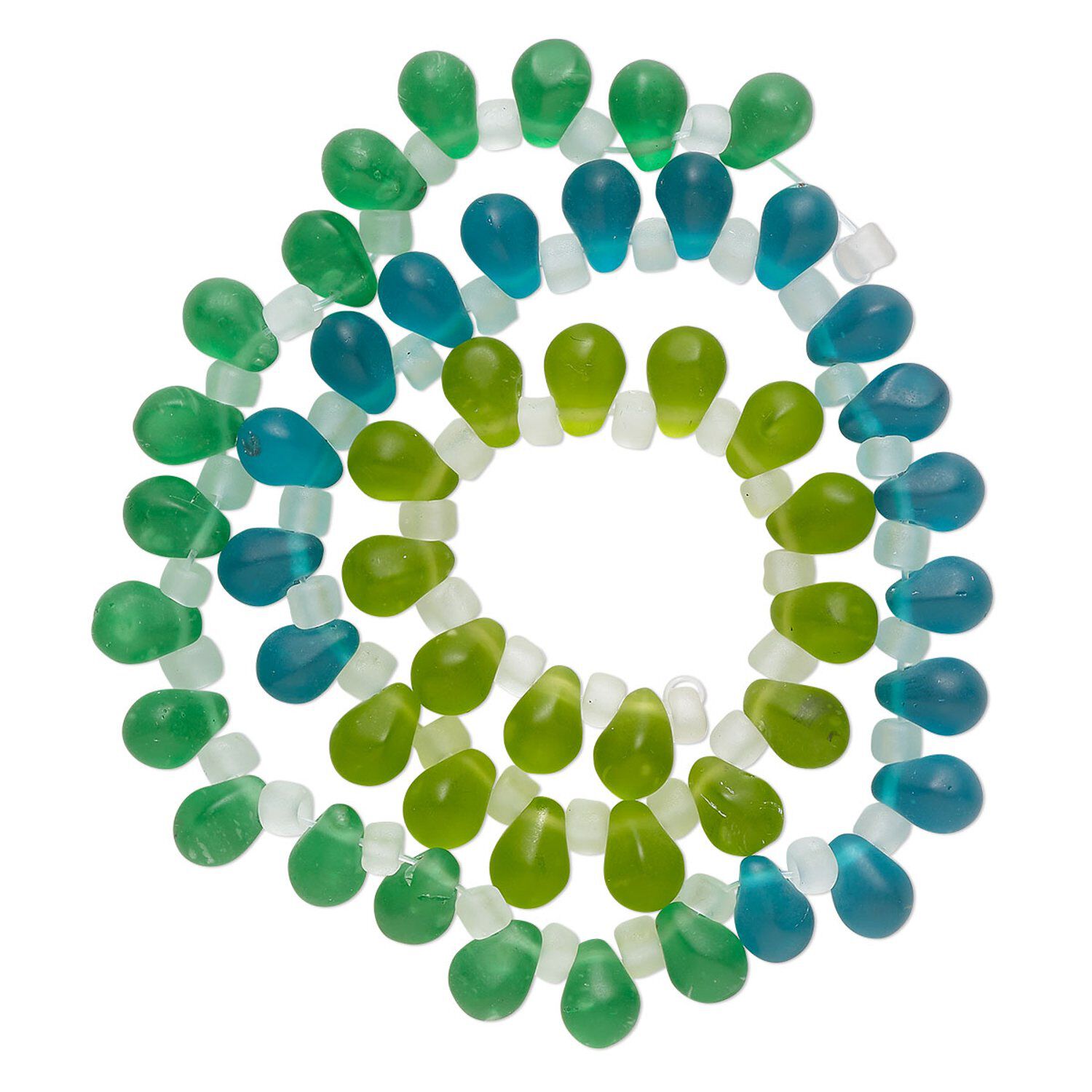 Strung in popular color groupings, these handcrafted glass teardrops save time while shopping for coordinating jewelry supplies. Beads are temporarily strung with clear glass spacer beads to protect against chipping. Color, shapes, and sizes may vary. Contains approximately 50 beads.