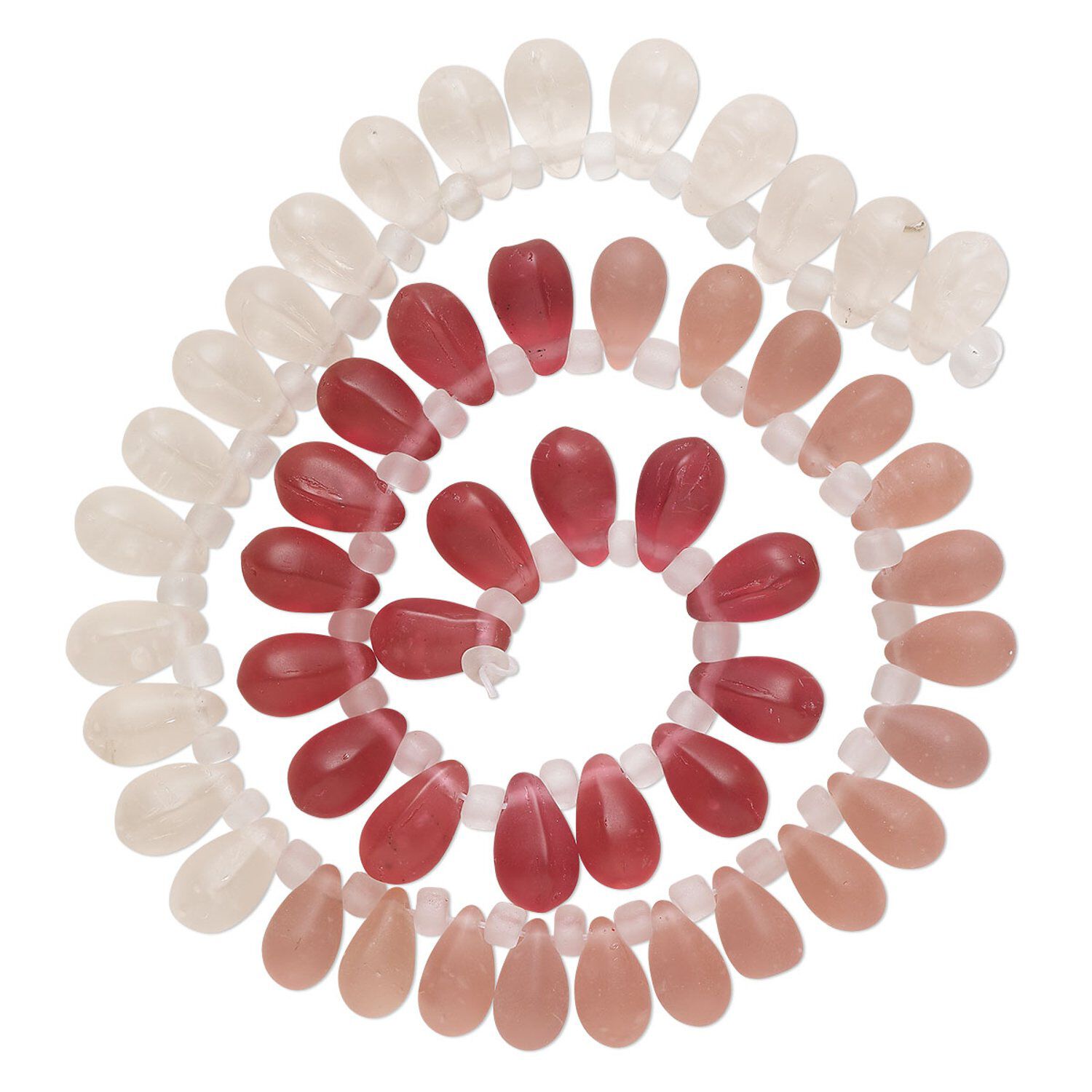 Strung in popular color groupings, these handcrafted glass teardrops save time while shopping for coordinating jewelry supplies. Beads are temporarily strung with clear glass spacer beads to protect against chipping. Color, shapes, and sizes may vary. Contains approximately 50 beads.