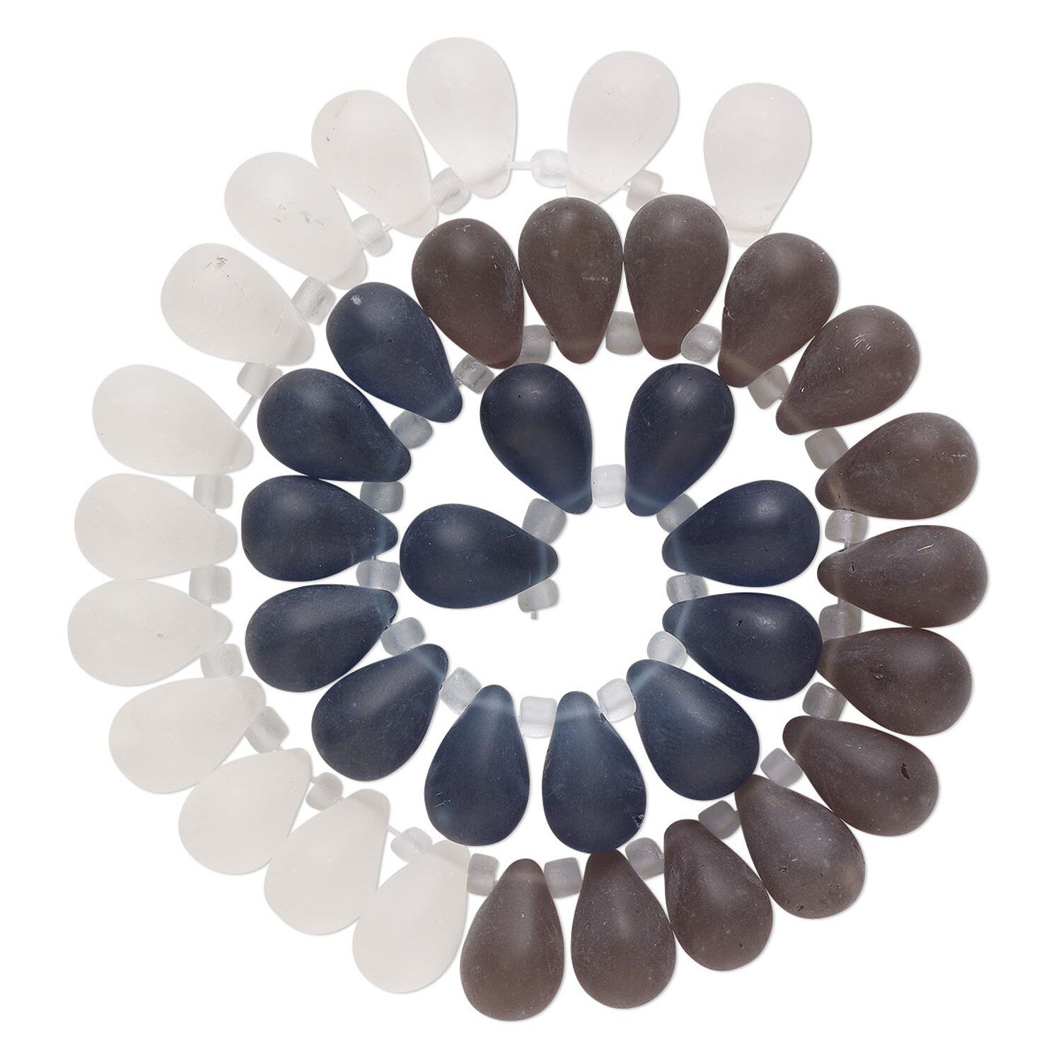 Strung in popular color groupings, these handcrafted glass teardrops save time while shopping for coordinating jewelry supplies. Beads are temporarily strung with clear glass spacer beads to protect against chipping. Color, shapes, and sizes may vary. Contains approximately 35 beads.