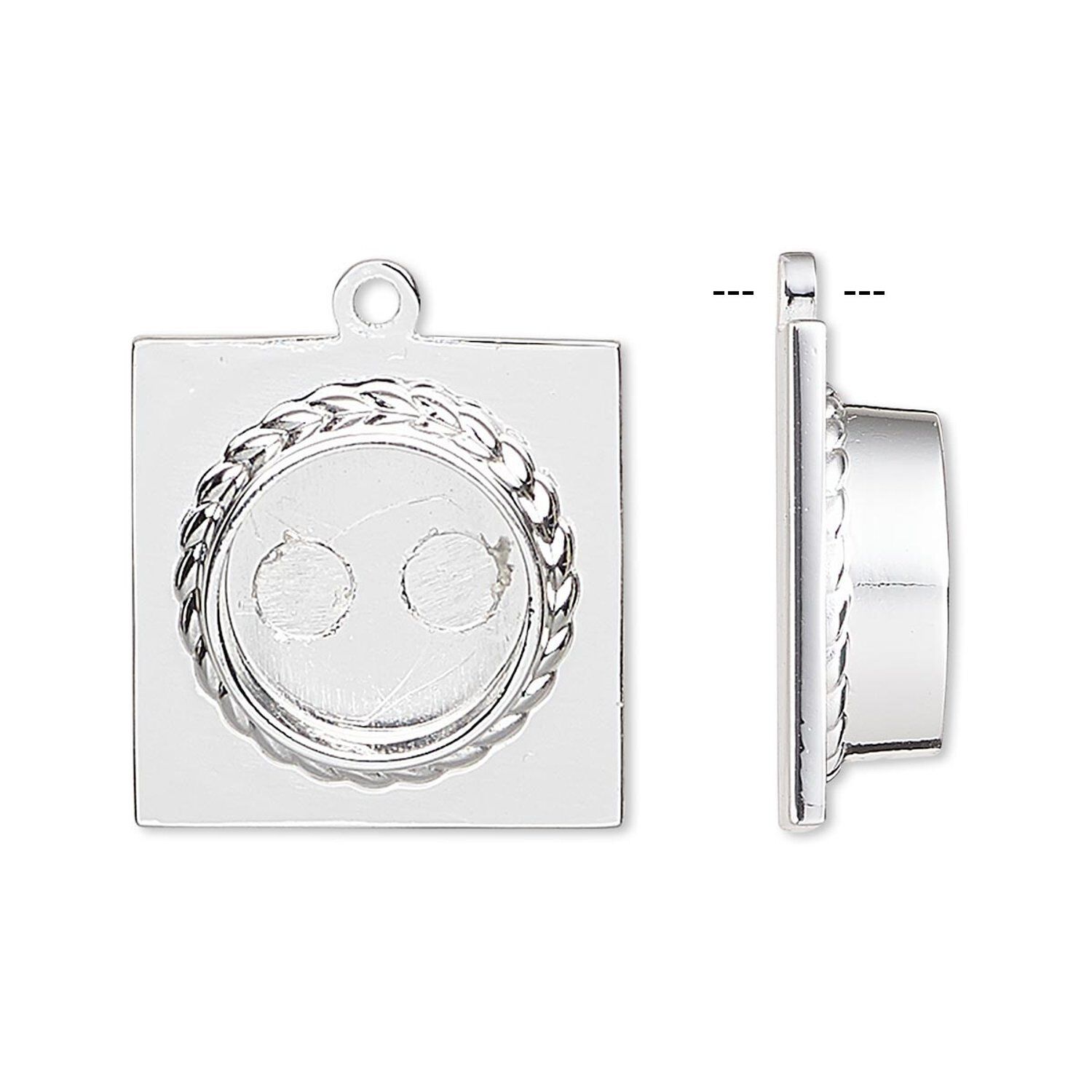 Drop, silver-plated "pewter" (zinc-based alloy), 20x20mm square with 12mm non-calibrated round setting. Sold per pkg of 2.
