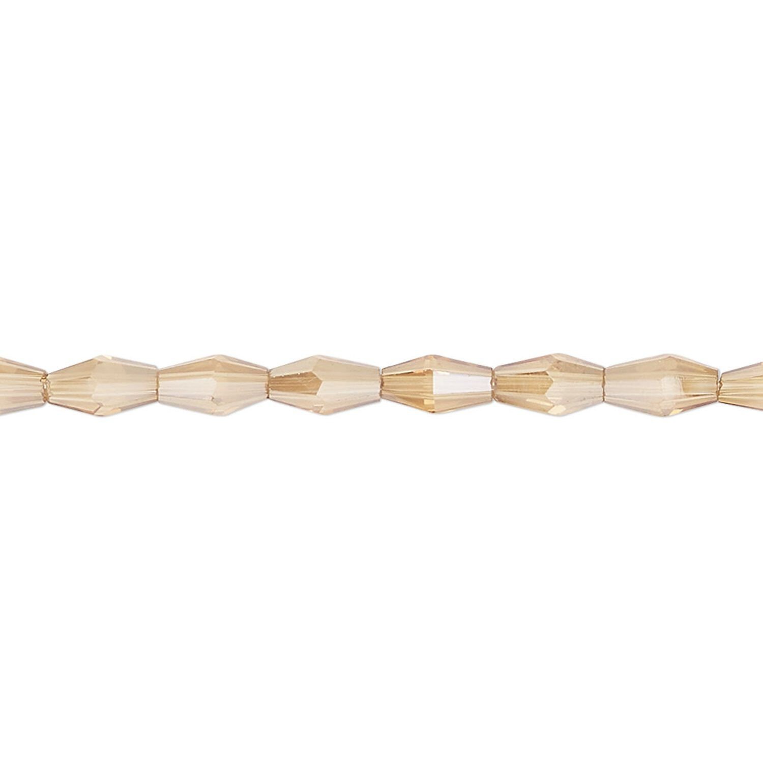 The machine-cut facets on these gorgeous beads are not only consistent but gives them incredible sparkle. The elongated bicone shape of these beads will add visual interest to any design. Pair them with regular bicones or faceted rounds for even more texture.