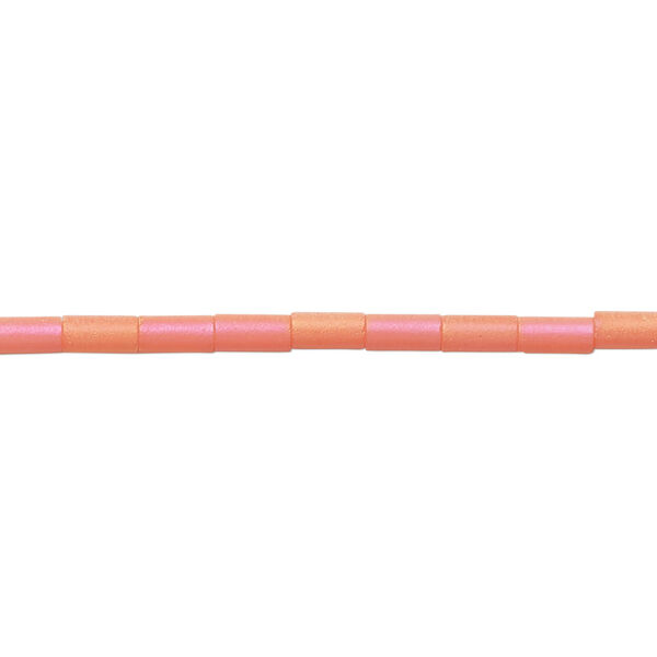 Bead, glass, translucent matte tangerine AB, 5x2.5mm round tube. Sold per 15-1/2 to 16-inch strand.