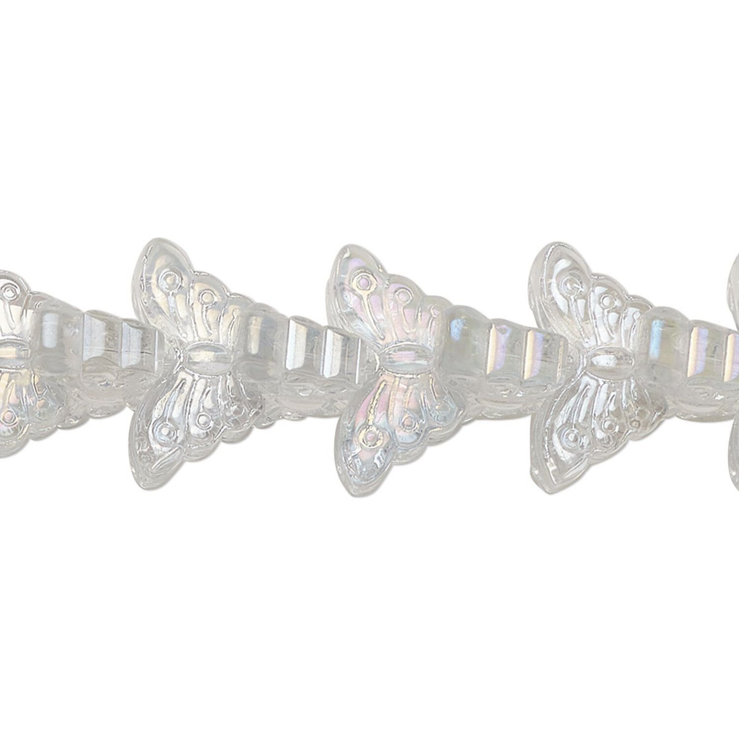 Bead, pressed glass, translucent clear AB, 15 x 8mm butterfly. Sold per 8-inch strand, approximately 35 beads.