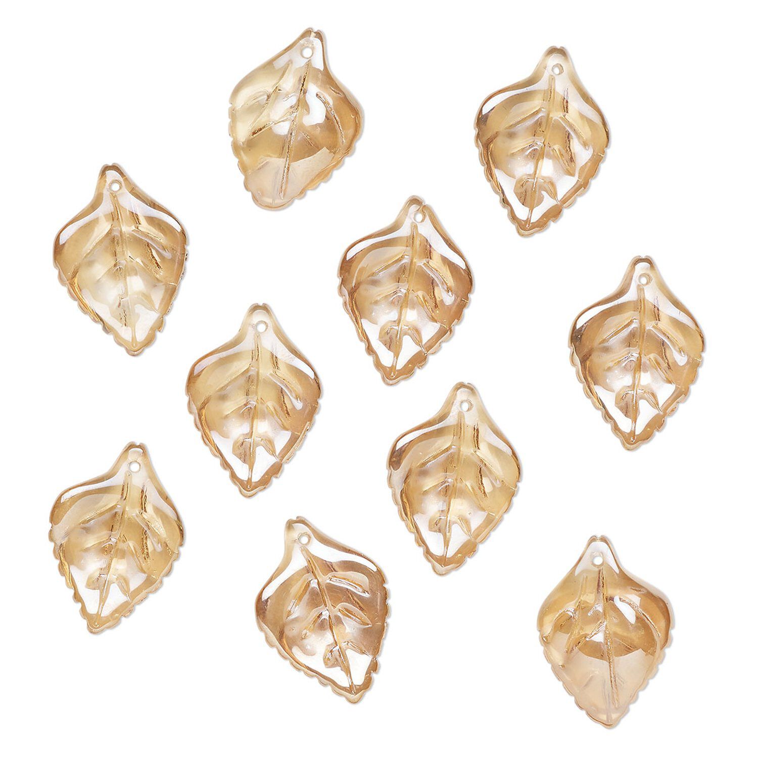 Drop, pressed glass, translucent champagne luster, 23 x 16mm pressed leaf, top-drilled. top-drilled. Sold per pkg of 10.