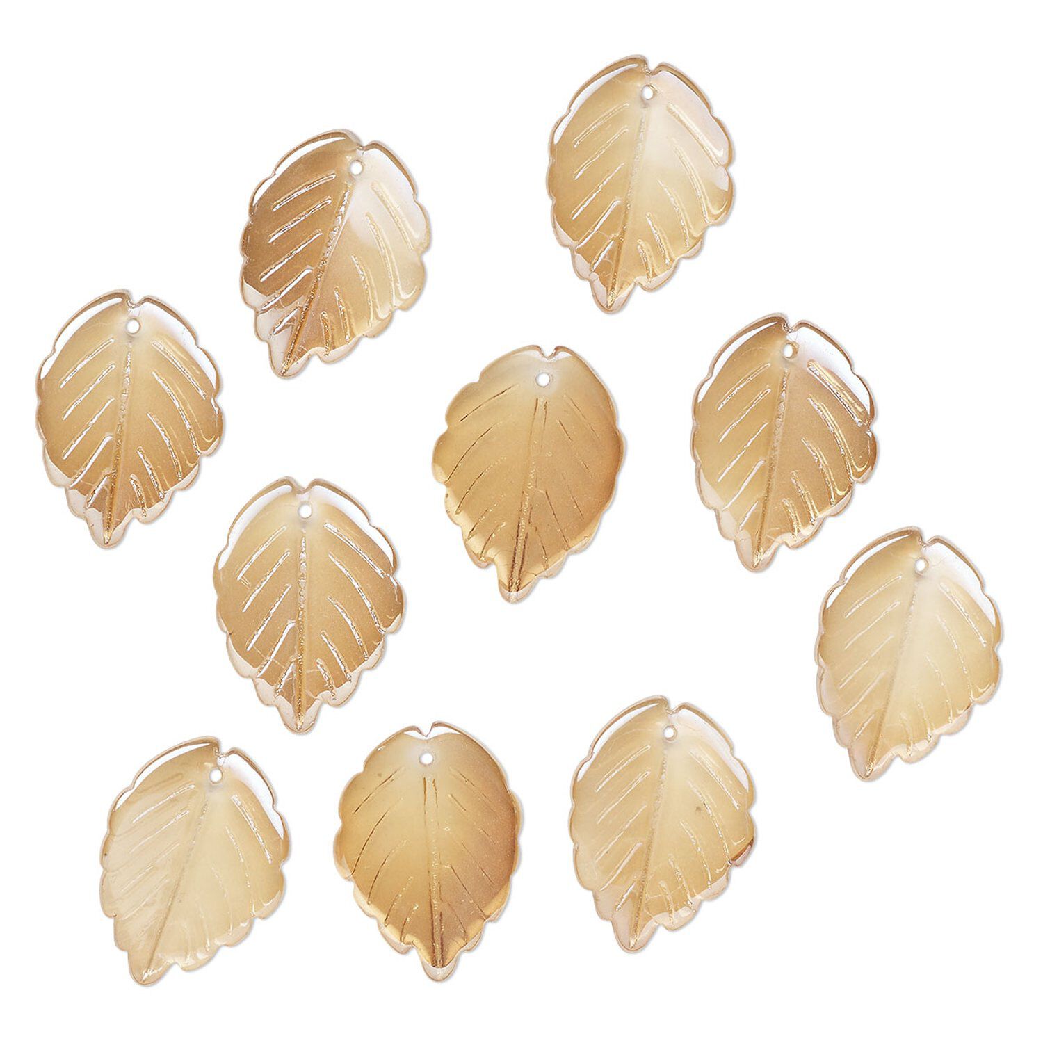 Drop, pressed glass, translucent champagne luster, 24 x 17mm pressed leaf, top-drilled. top-drilled. Sold per pkg of 10.