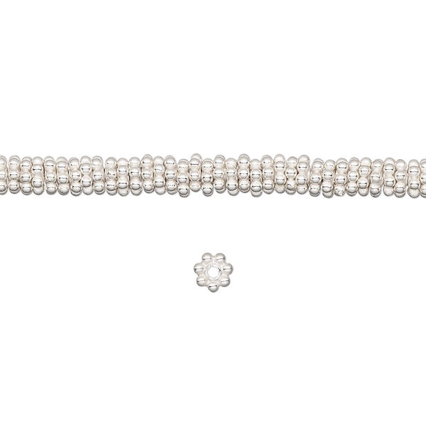 Bead, sterling silver, 4x1mm beaded rondelle. Sold per 1/4 troy ounce pkg, approximately 75-80 beads.
