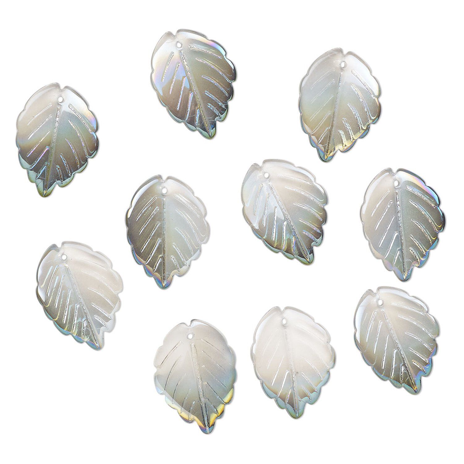 Drop, pressed glass, translucent metallic green rainbow, 24 x 17mm pressed leaf, top-drilled. top-drilled. Sold per pkg of 10.