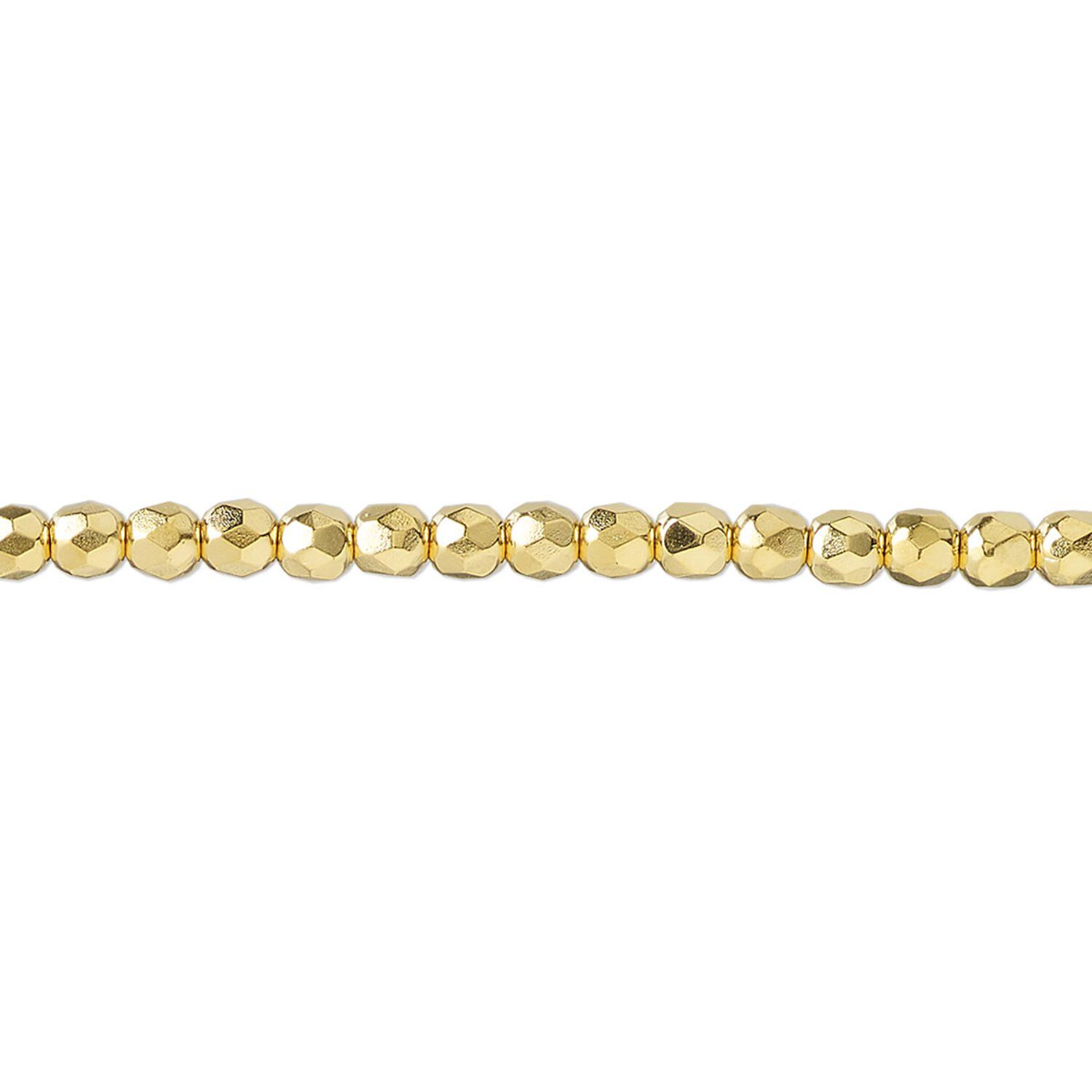 Bead, fire-polished, 14Kt gold-plated glass, opaque clear, 3mm faceted round. Sold per 1 mass, approximately 1,200 beads.