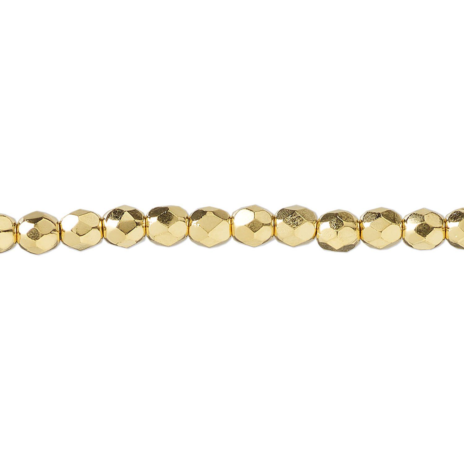 From the Czech Republic, these beads are expertly crafted from quality glass and machine-faceted, then polished by glazing inside a red-hot oven. 14Kt gold plating is then added for a high shine and glittering finish. Size and shape may vary slightly and color may vary from dye lot to dye lot.