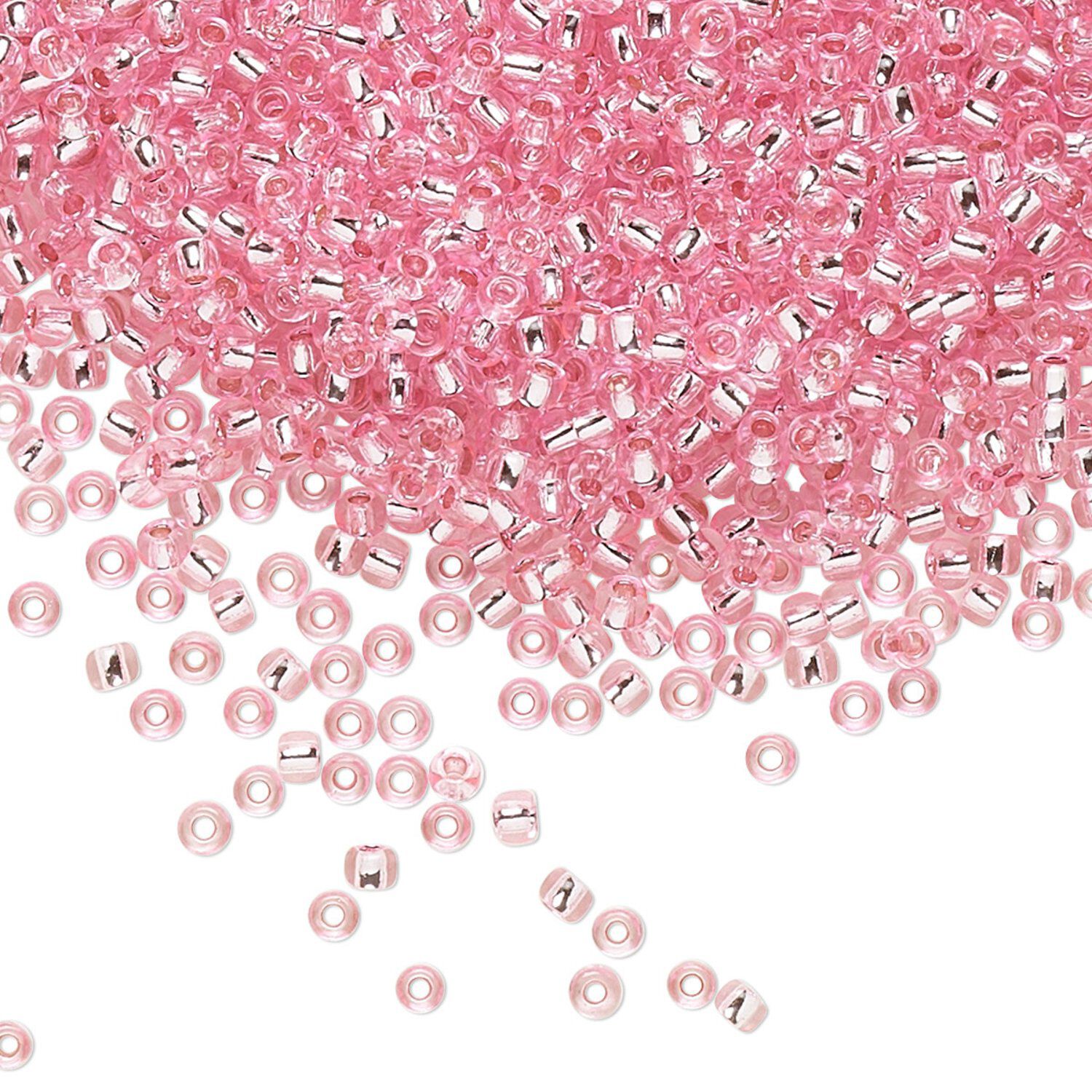 Seed bead, TOHO BEADS®, glass, pkg/250g, #11 round, transparent silver-lined pink (TR-11-38).