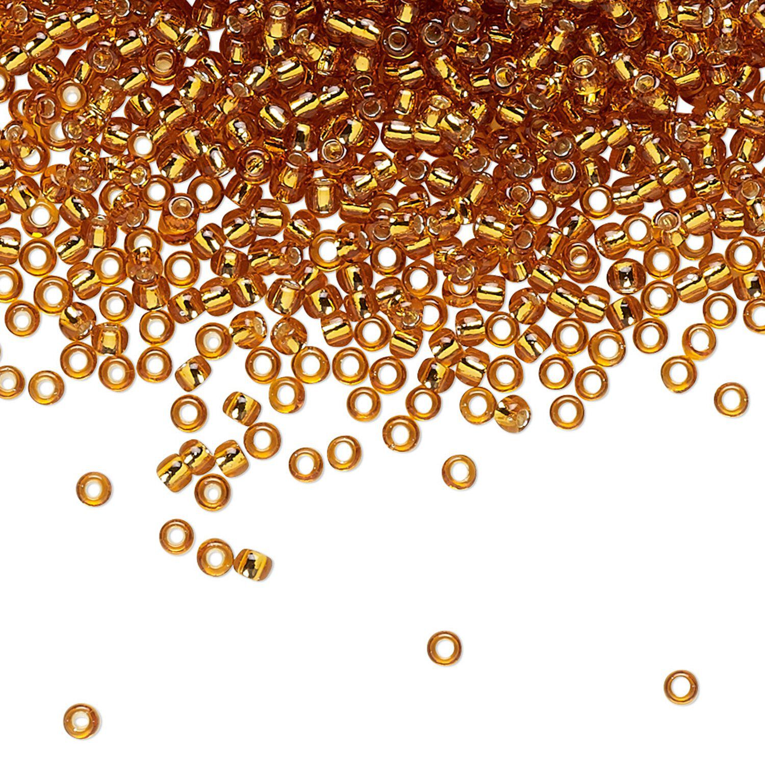 Seed bead, TOHO BEADS®, glass, pkg/7.5g, #11 round, transparent silver-lined topaz (TR-11-22C).