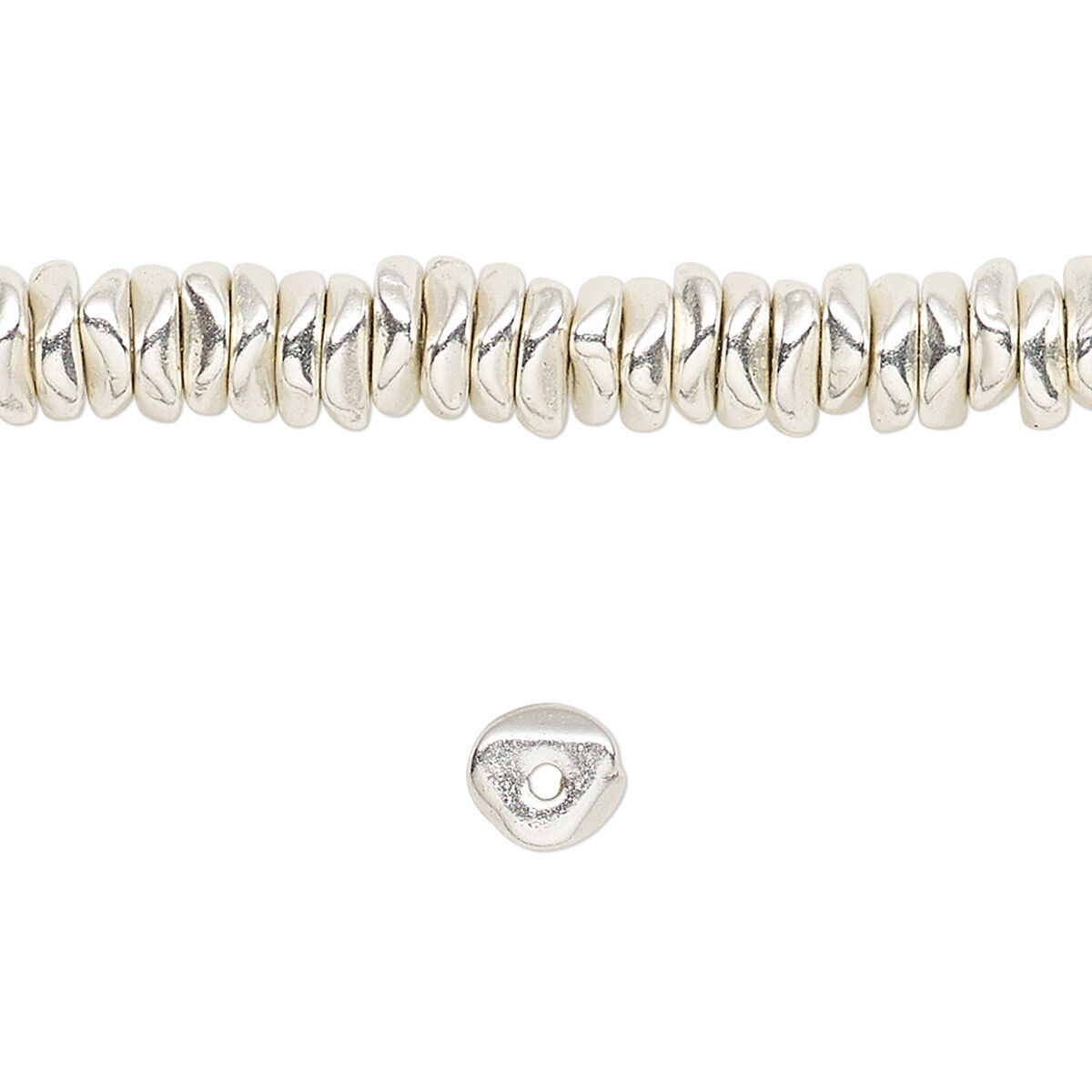 Bead, silver-finished "pewter" (zinc-based alloy), small chip. Sold per 8-inch strand.