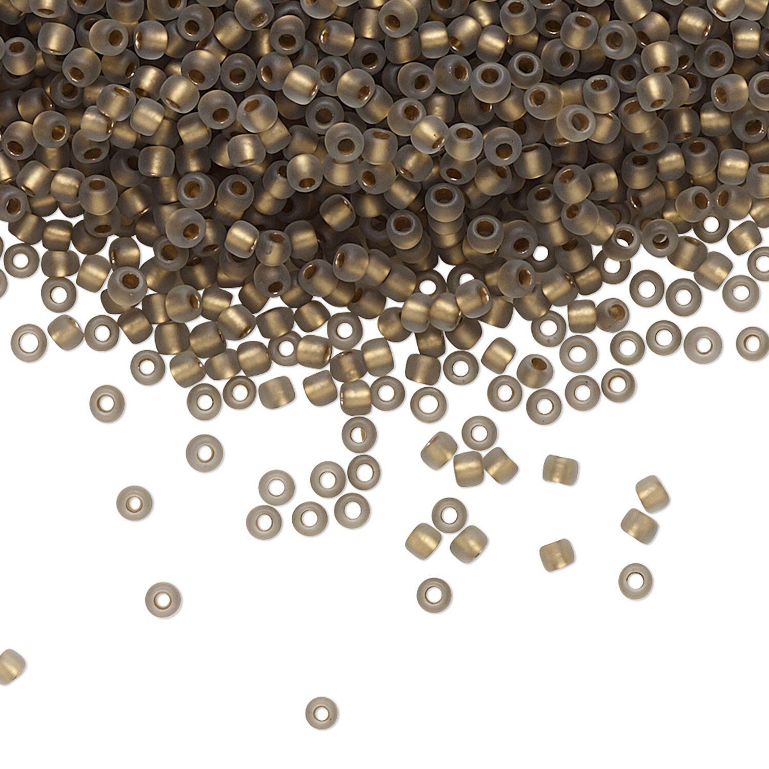 Seed bead, TOHO BEADS®, glass, pkg/50g, #11 round, translucent gold-lined frosted black diamond (TR-11-999F).