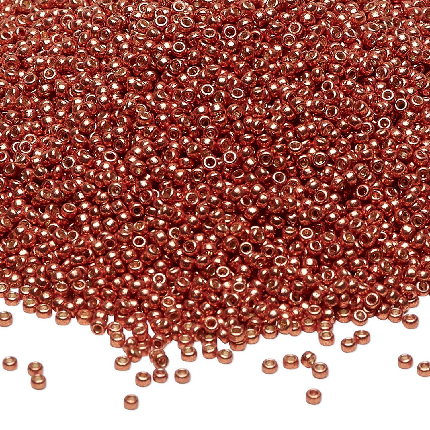 Seed bead, Miyuki, glass, pkg/250g, #15 rocaille, Duracoat® opaque galvanized copper, (RR-4207).
