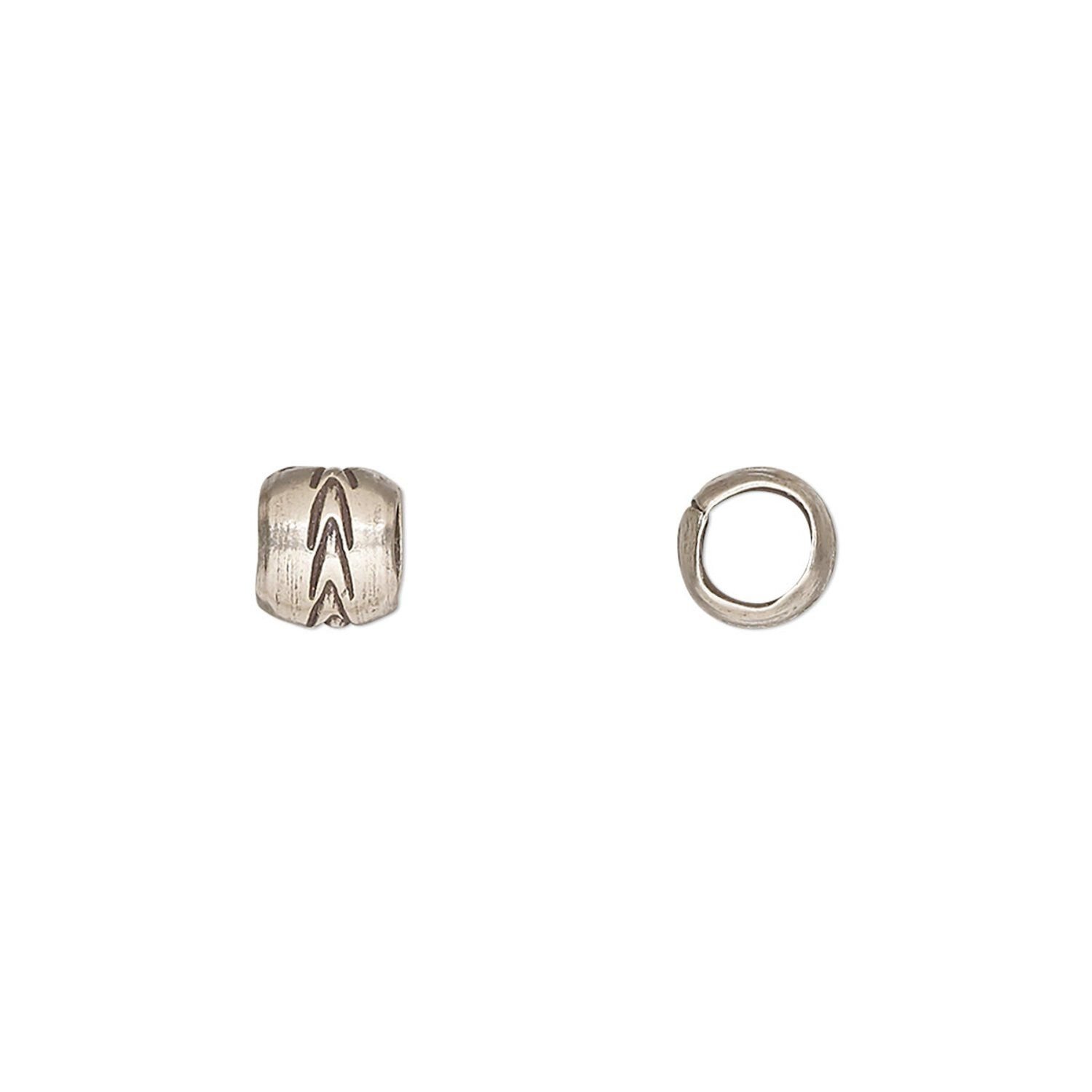 Bead, Hill Tribes, antiqued sterling silver, 7x6mm barrel with arrow design. Sold individually.