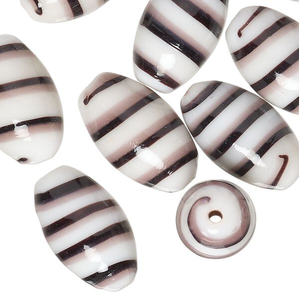 Resembling hard candy with their fun stripes of black and purple on white, these beads will add sweet touch of playfulness to your next design.
