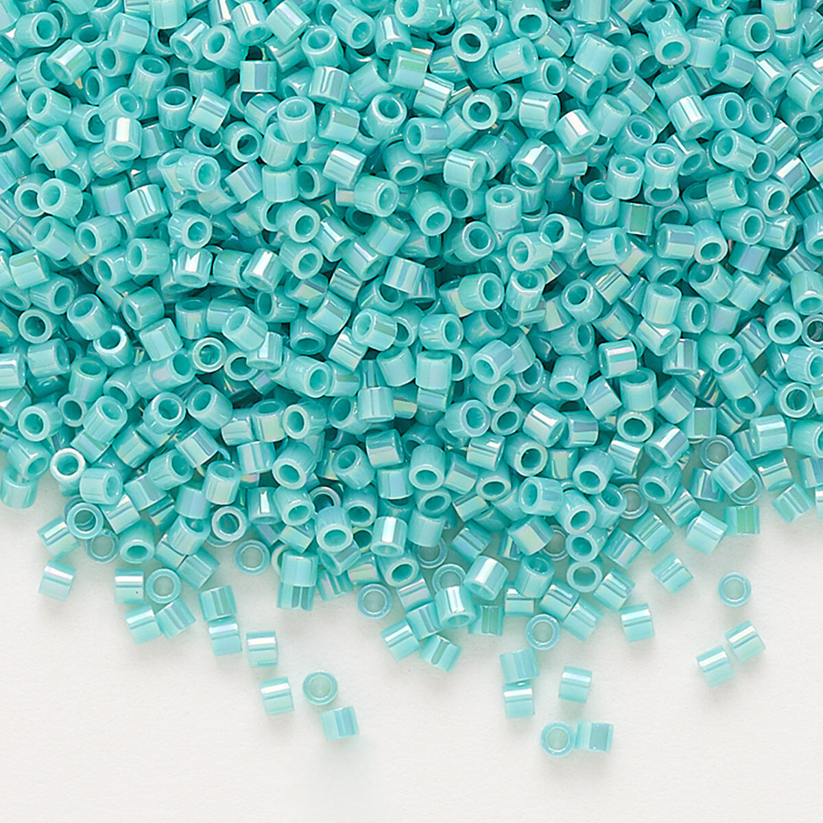 Seed bead, Delica®, glass, pkg/250g, #15 round, opaque rainbow turquoise green (DBS-0166).