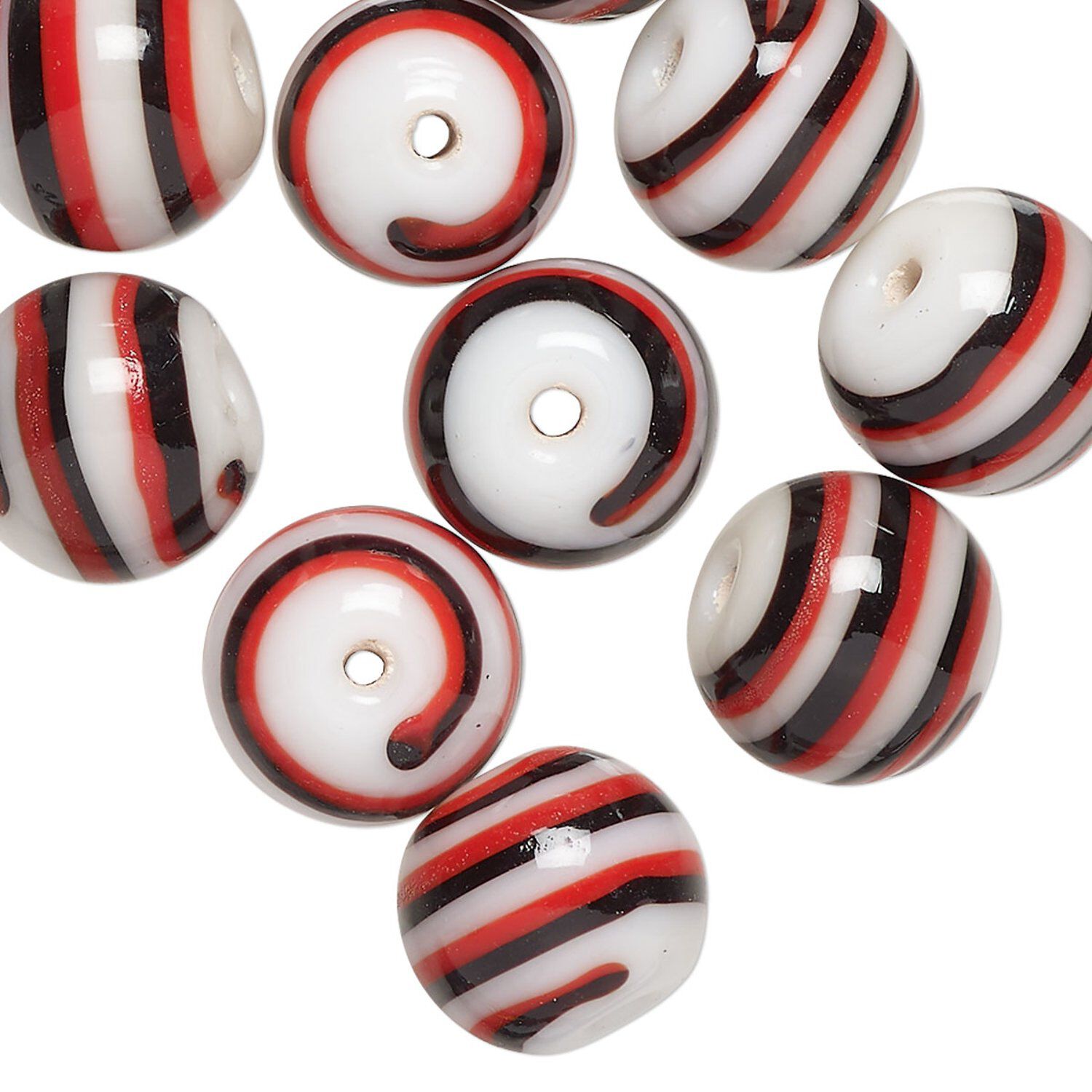 Resembling hard candy with their fun stripes of red and black on white, these beads will add sweet touch of playfulness to your next design.
