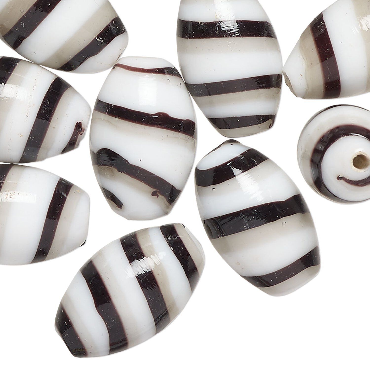 Resembling hard candy with their fun stripes of black and grey on white, these beads will add sweet touch of playfulness to your next design.