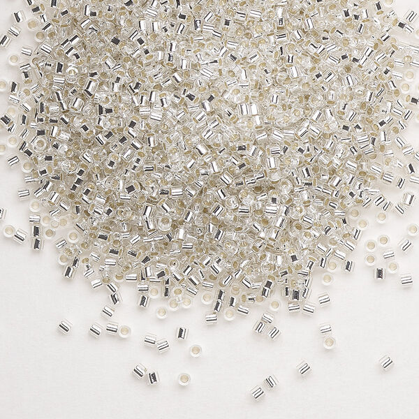 Seed bead, Delica®, glass, pkg/7.5g, #15 round, transparent silver-lined crystal clear (DBS-0041).