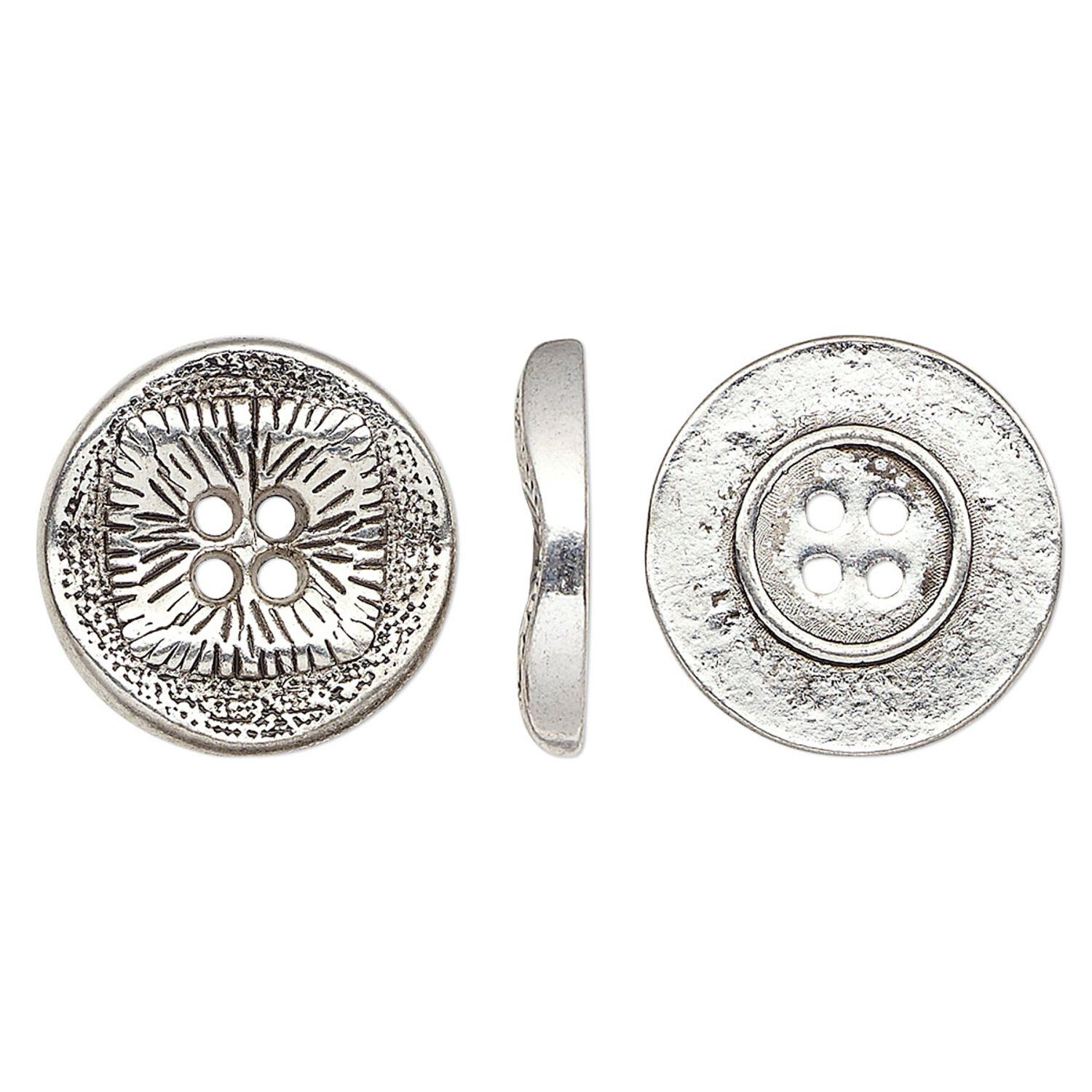 Traditionally used for sewing, buttons are also functional jewelry-making components and can be used as links, charms, clasps, embellishments and more. Button holes are great for stringing or attaching to designs with headpins, wire, adhesives or a variety of other options. Each button has four holes. Colors, shapes and sizes may vary in each lot.