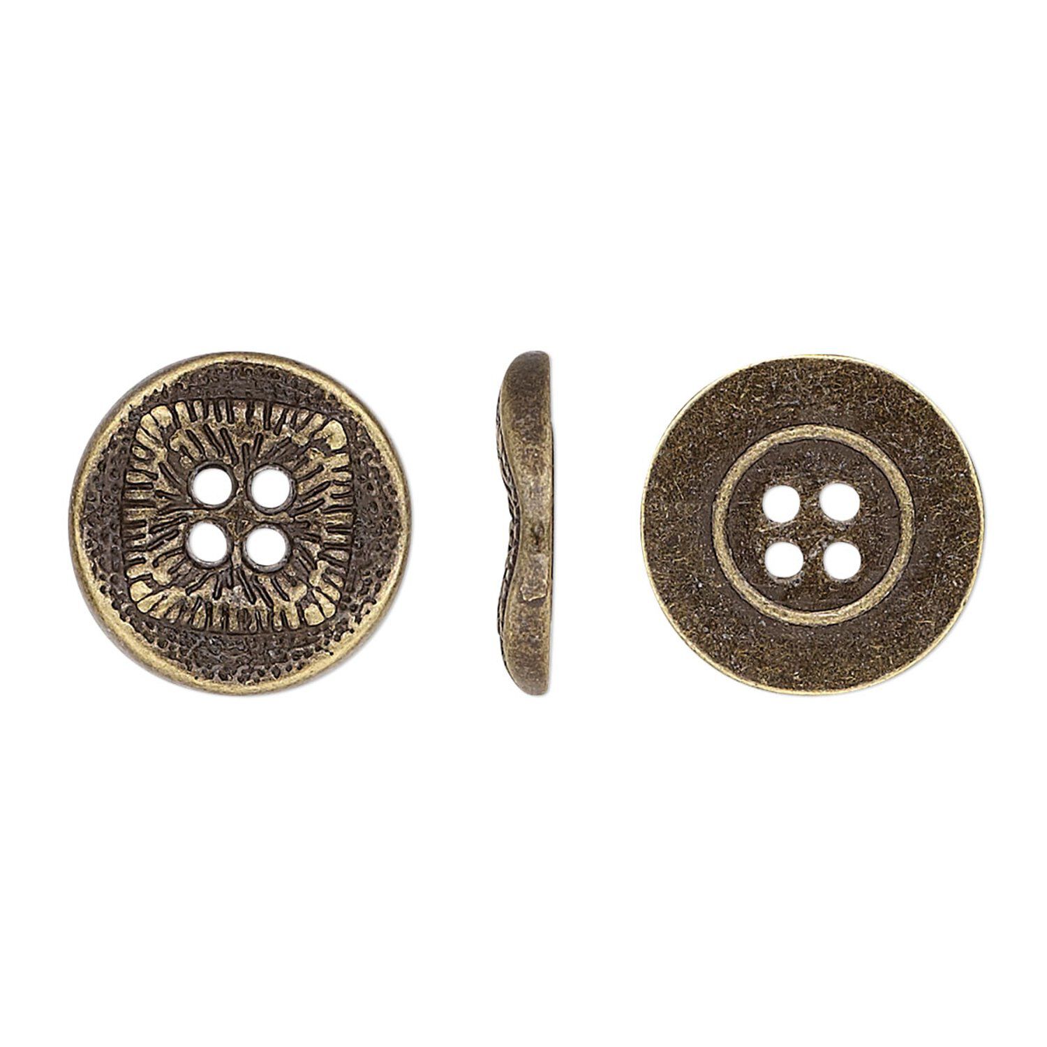 Traditionally used for sewing, buttons are also functional jewelry-making components and can be used as links, charms, clasps, embellishments and more. Button holes are great for stringing or attaching to designs with headpins, wire, adhesives or a variety of other options. Each button has four holes. Colors, shapes and sizes may vary in each lot.