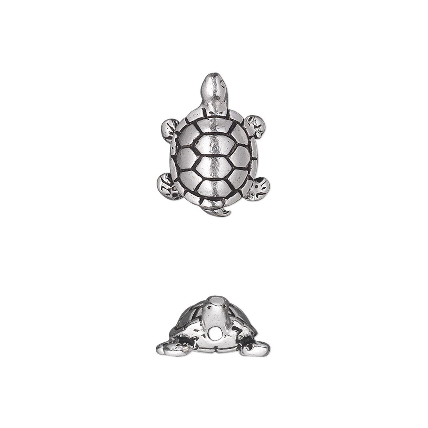 Antique silver-plated turtle beads add a whimsical accent to jewelry designs. Loved for their affordability and precious-metal look, TierraCast® pewter (tin-based alloy) beads are lightweight and cost-effective alternatives to precious metal. All original designs, made in Greece and copyrighted by TierraCast®.