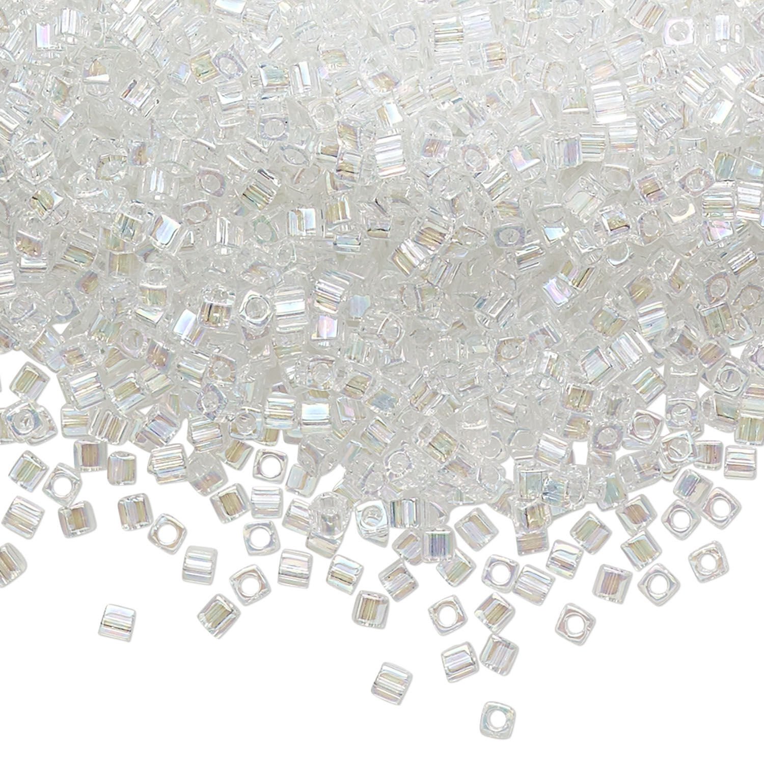 Seed bead, Miyuki, glass, pkg/250g, 1.8mm square, translucent rainbow crystal clear, (SB-250).