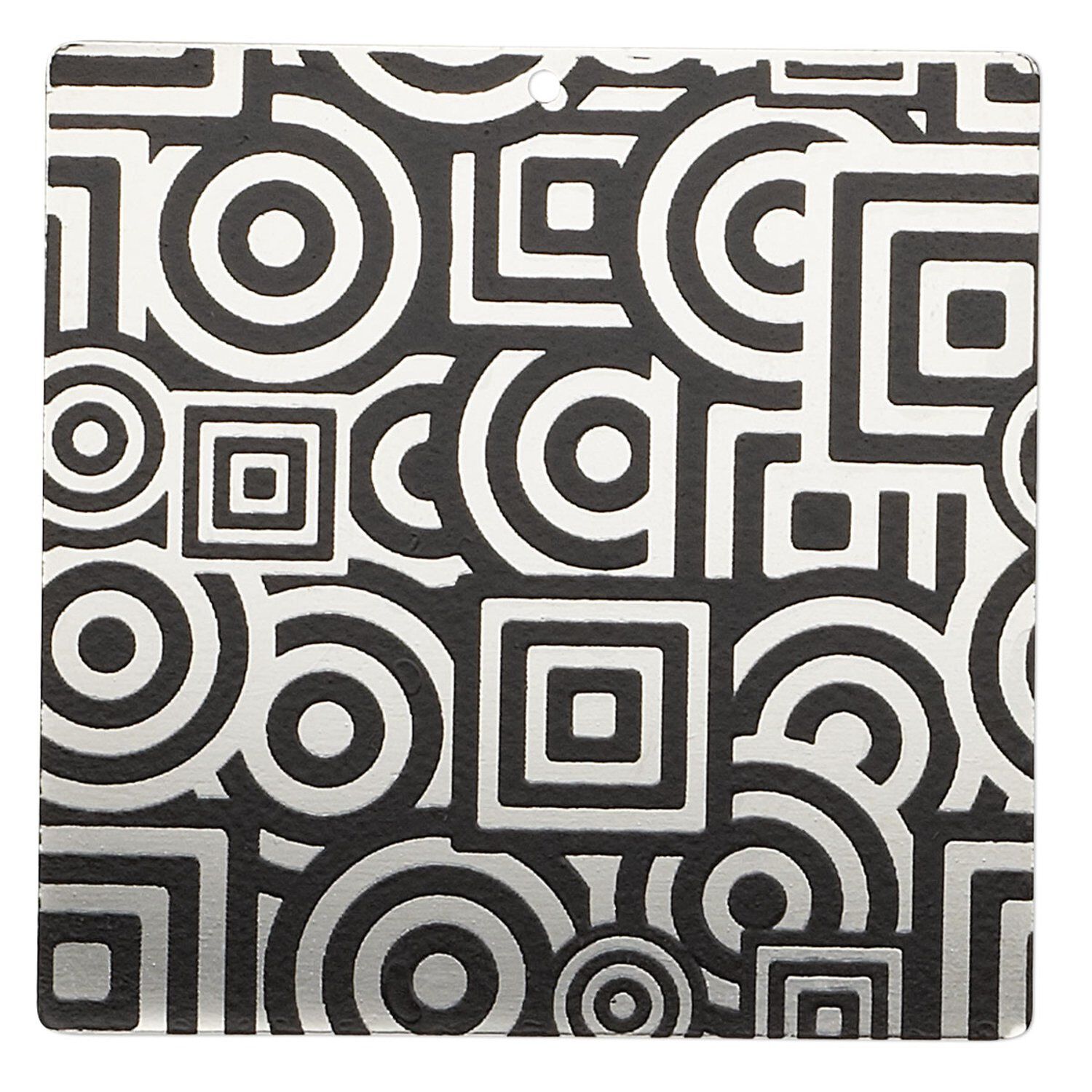 Carbon steel focal components display a geometric pattern that is ideal alone on a simple chain or cord, or mixed with complementary elements. Imitation rhodium-finished carbon steel is stamped and silk screened for a high-quality finish with consistent design.