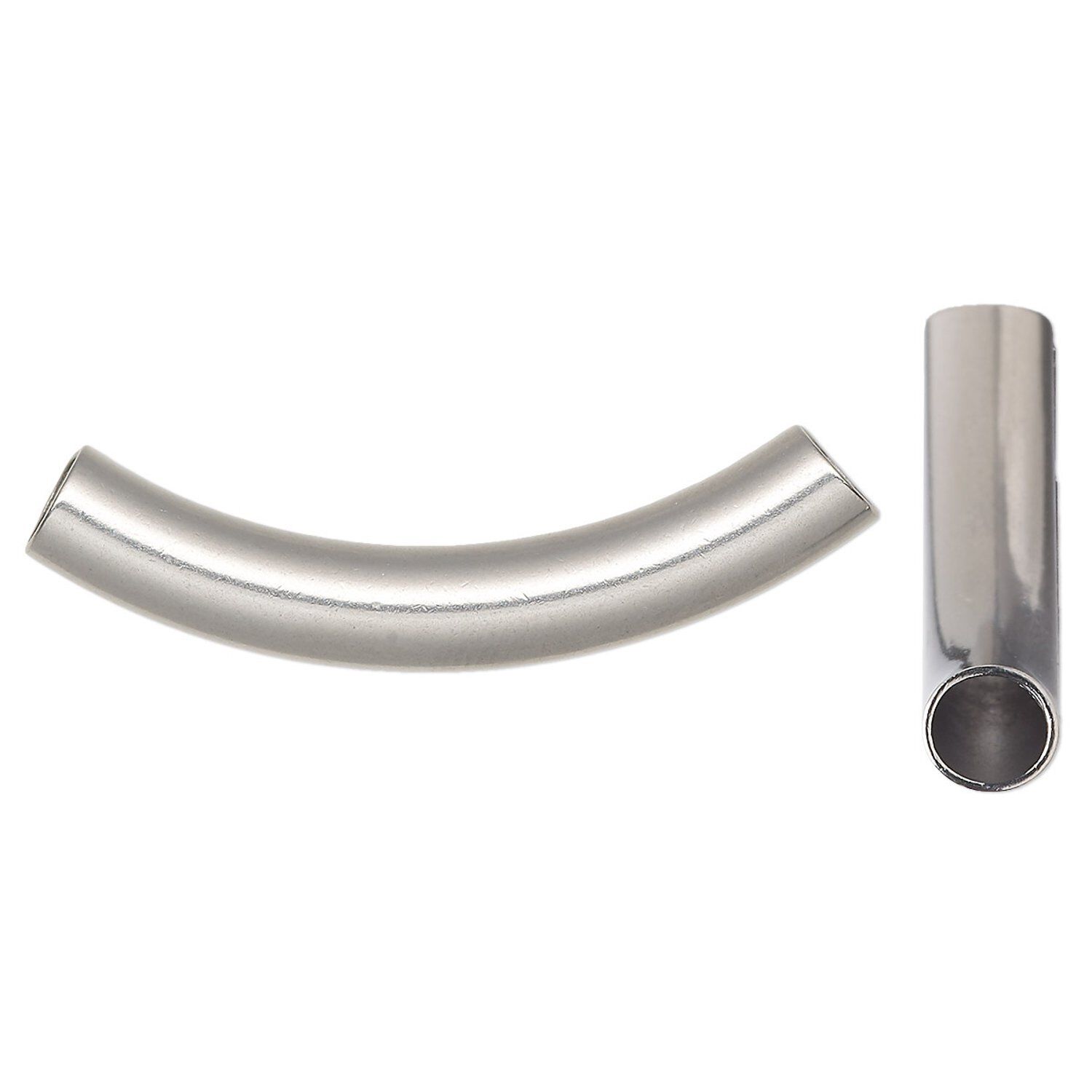 Bead, stainless steel, 45x7mm curved tube. Sold per pkg of 2.
