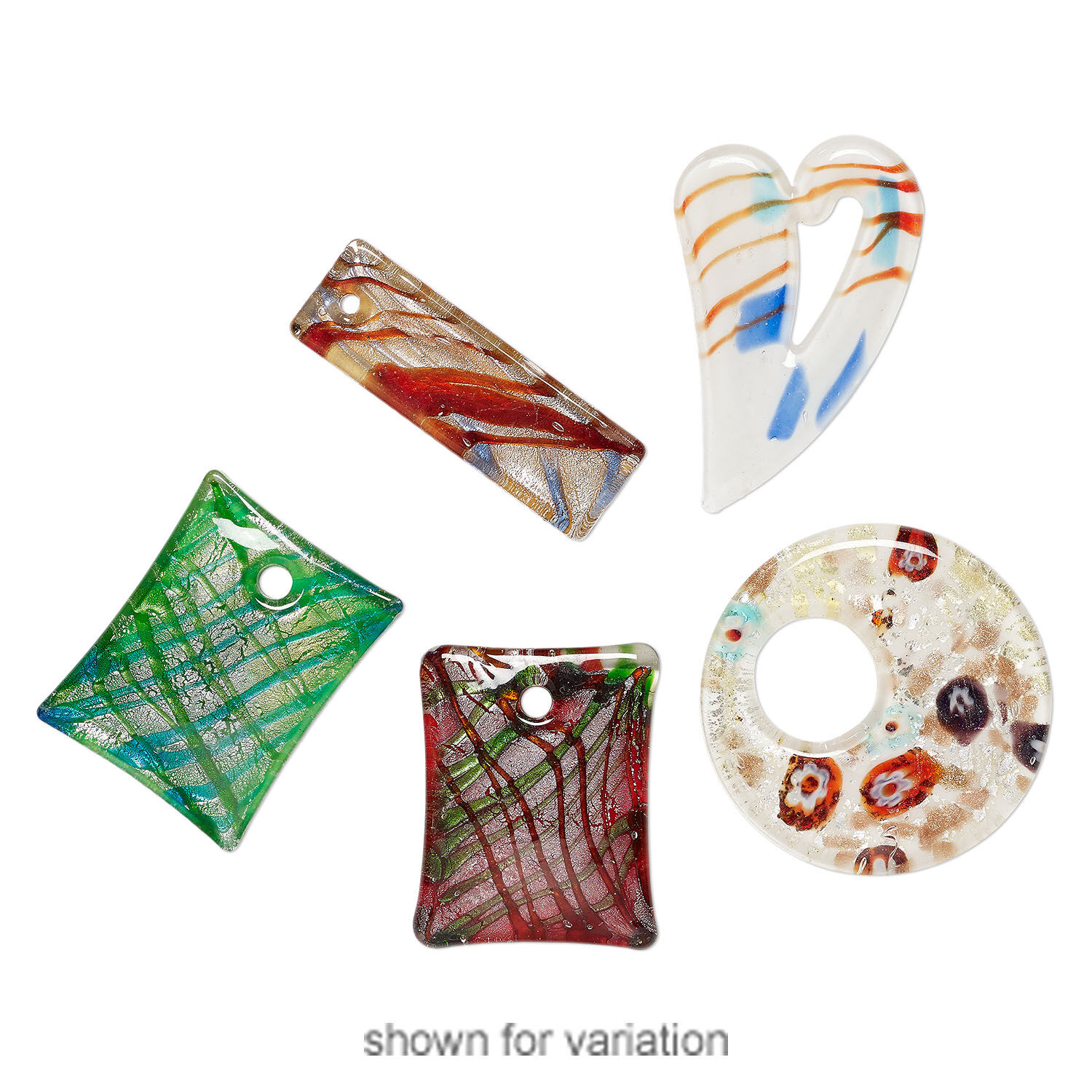 Focal mix, lampworked and millefiori glass, mixed colors, 41x32mm-61x51mm mixed shape. Sold per pkg of 5.